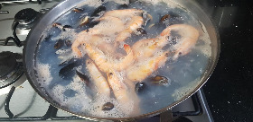 끓는 물에 홍합과 새우 투하