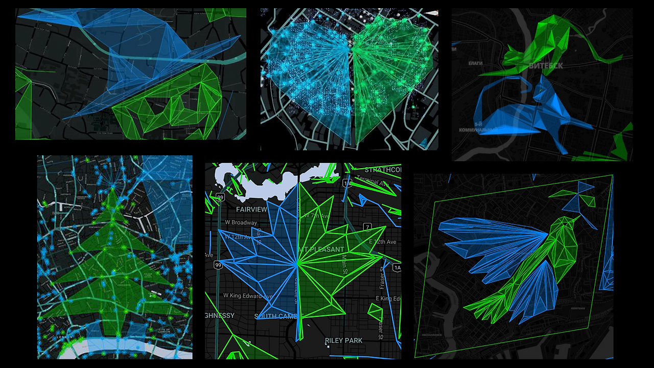Ingress 유저들은 하트같이 단순한 도형부터 굉장히 정교하고 복잡한 그림까지 그려내고 있는데 이를 개별적인 플레이어가 독립적으로 계산해서 포탈을 점령해 나가기는 사실상 쉽지 않다. 같은 편을 넘어서 서로의 진영 간 반드시 대규모의 조직적인 커뮤니케이션이 현장에서 실시간으로 이뤄져야 가능한 일이다.