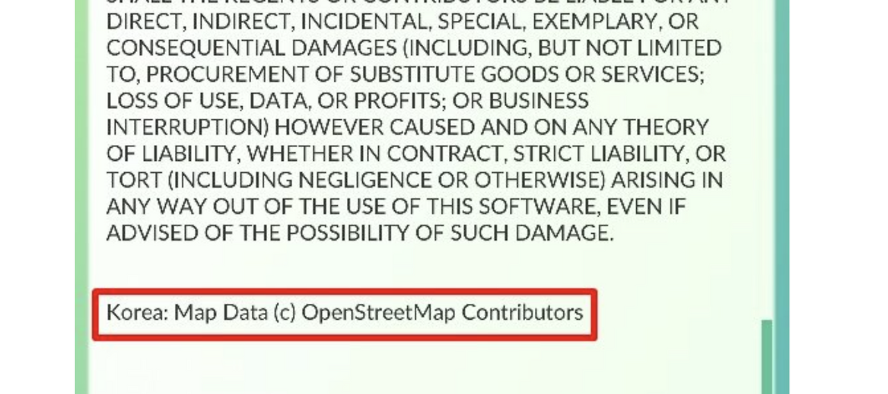 그래서 국내에서 보안등의 이유로 구글이라는 외국 기업이 소유한 구글맵에 지도 정보를 반출하지 않기로 결정한 것과는 다르게 누구도 소유하고 있지 않은 비영리 오픈소스 오픈스트리트맵에는 한국 사람들이 자발적으로 지도 정보를 등록해 놨기 때문에 포켓몬고에 사용될 수 있었다.