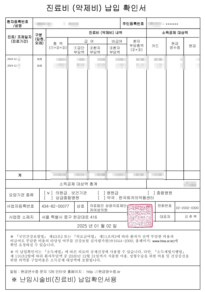 난임 시술비 연말정산용 서류는 잘 받았으니 잘 제출해 보도록 해야겠습니다.