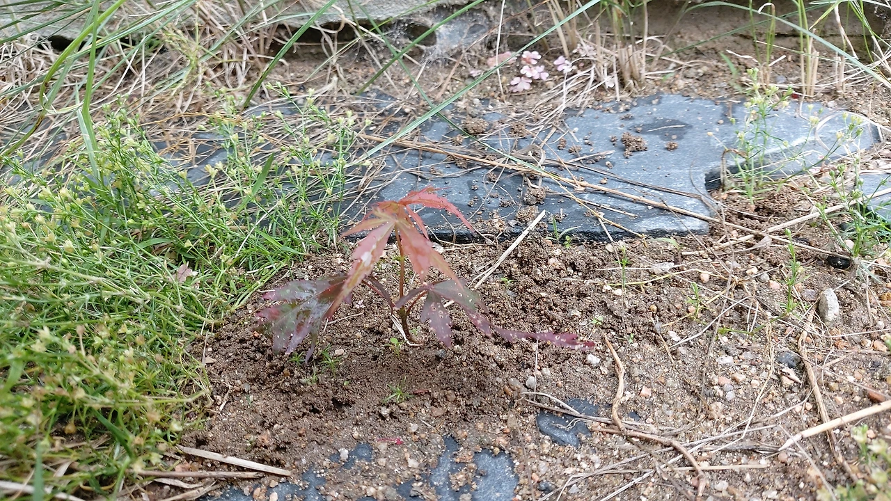 아니나 다를까 하루는 잡초를 제거하다가 10센티미터도 안 되는 아기 홍단풍 2주를 발견했다. 씨앗이 날아와, 판석 사이에 자리 잡았던 모양이다. 분명 재활용 쓰레기 밑에서 잘 자라지 못할 것이 뻔해서 화분 2개에 옮겨 심었다. 그때부터 그 아이들은 잡초에서 홍단풍이 되었다. 잡초라 해도 모두에게 쓸모없는 것은 아니다. 나에게 그 홍단풍은 관심의 대상이었다. 우리 집안에서는 물 주기 귀찮아서 스킨답서스를 수경재배(물이 말라 바닥쯤 있을 때 한 번만 주면 된다)로 키우는데, 마당에 있는 홍단풍은 죽을까 봐 종종 물을 주고는 했다. 하나, 그중 한주는 이번 폭염에 며칠 못 챙겨 줬더니, 말라죽어버렸다. 흠, 그냥 땅에서 잘 자라는 것을 괜히 화분에 심었나 후회를 했다. 다시 땅에 옮겨야 되나 말아야 되나, 잠시 고민을 했지만, 꼭 분재로 키워보고 싶은 욕심에 그냥 화분에 두기로 했다. 확실히 화분에 키우는 것은 더 어렵다. 앞으로 좀 더 관심을 기울여야겠다.