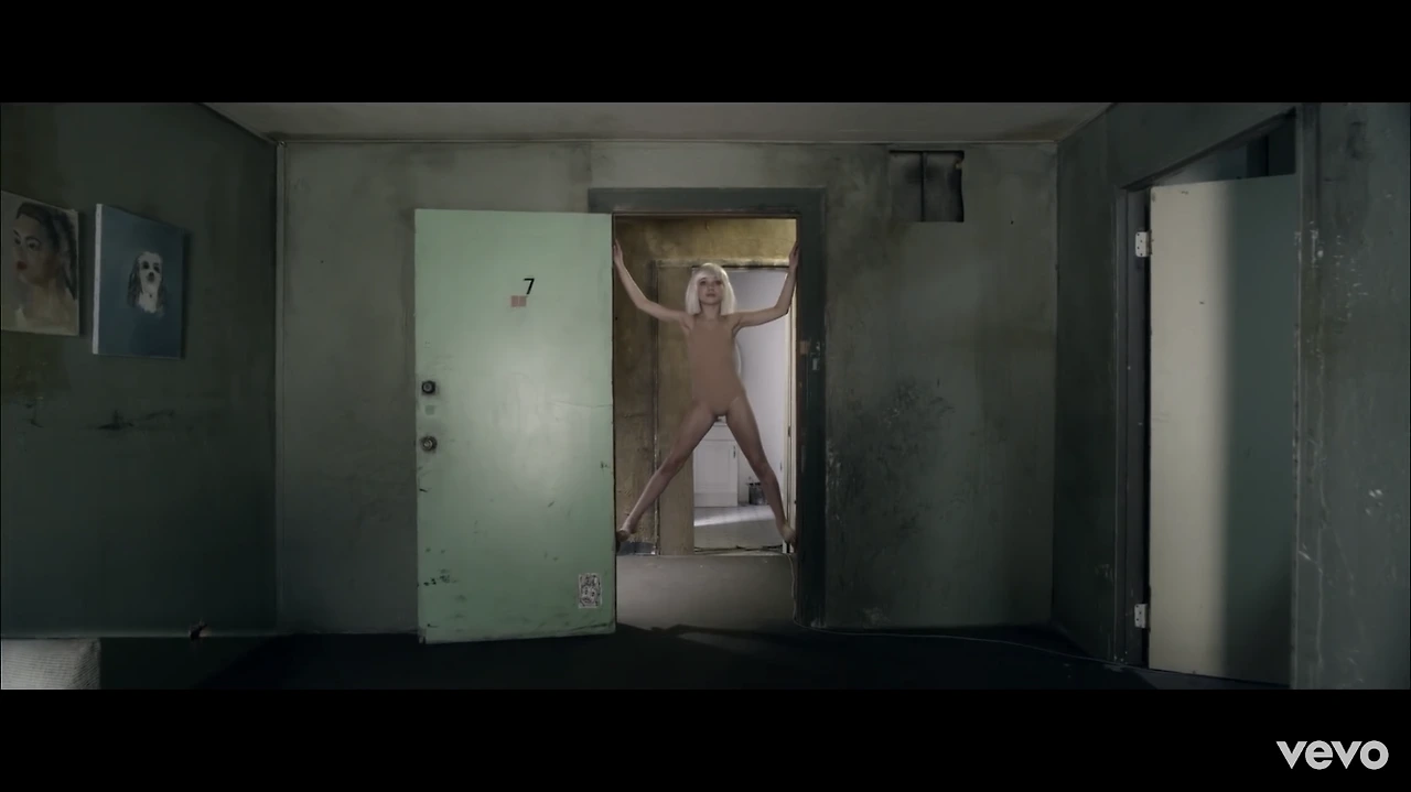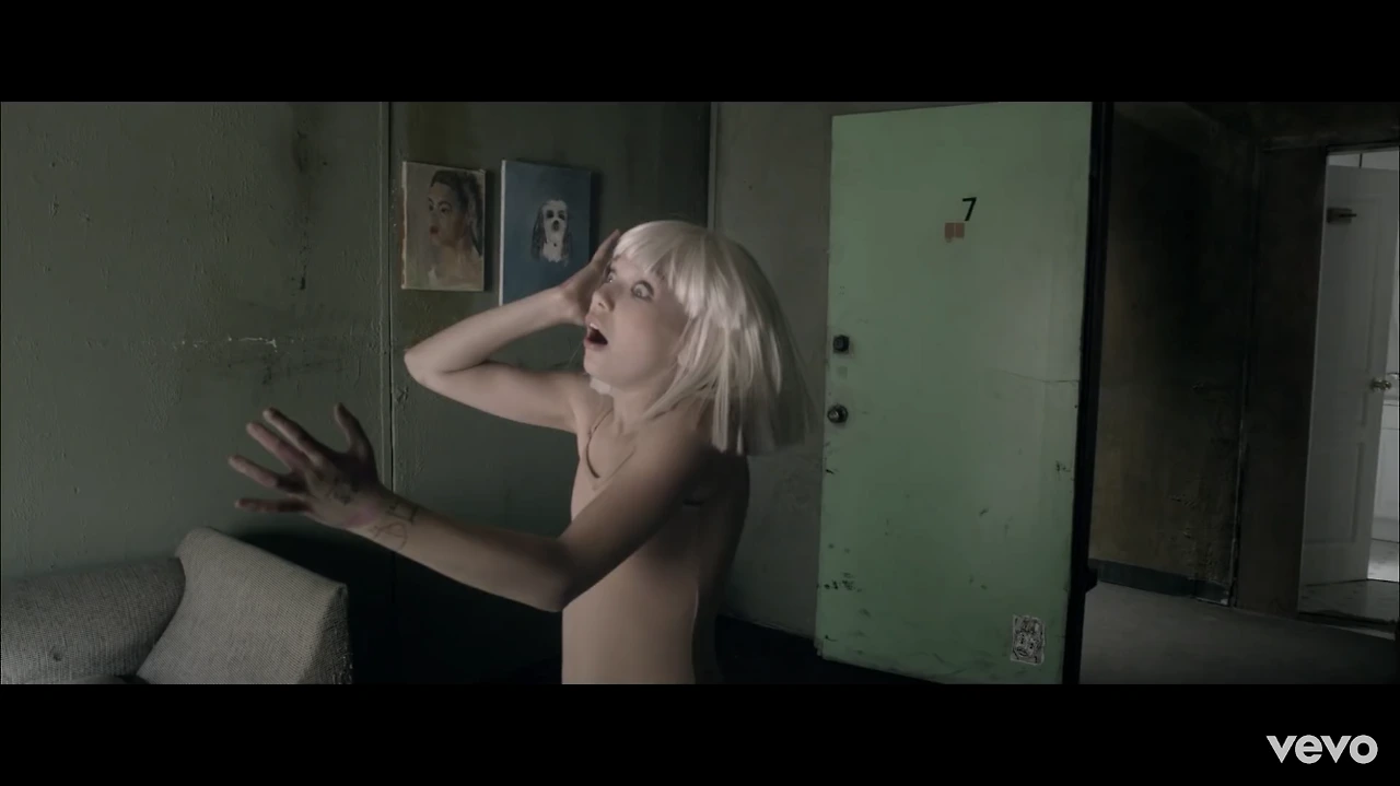 사실 Sia의 뮤직비디오에서는 대부분 얼굴이 부각되지만, 그중에서도 얼굴이 유독 두드러지는 뮤직비디오로는 'Buttons'(2009)와 'Big Girls Cry'(2015)를 꼽을 수 있다. 전자에서는 스타킹이나 집게 등의 도구를 사용해서 얼굴을 변형하는데, 얼핏 보면 한국 예능에서 개그를 위해 얼굴을 변형하는 것과도 비슷해 보인다. 그러나 뮤직비디오를 보다 보면 웃기기보다는 당혹스러울 정도로 얼굴을 반복적으로, 다양하게 변형한다. 후자는 설명이 필요하지 않을 정도로, 오직 얼굴과 손으로 모든 것을 말한다. 보기에 고통스럽기도 한 뮤직비디오인데, 이는 너무도 명백히 폭력과 고통의 경험을 담고 있는 움직임이 많기 때문이다. 'Chandelier'도 그랬지만, 이는 그보다도 더 직설적이다.