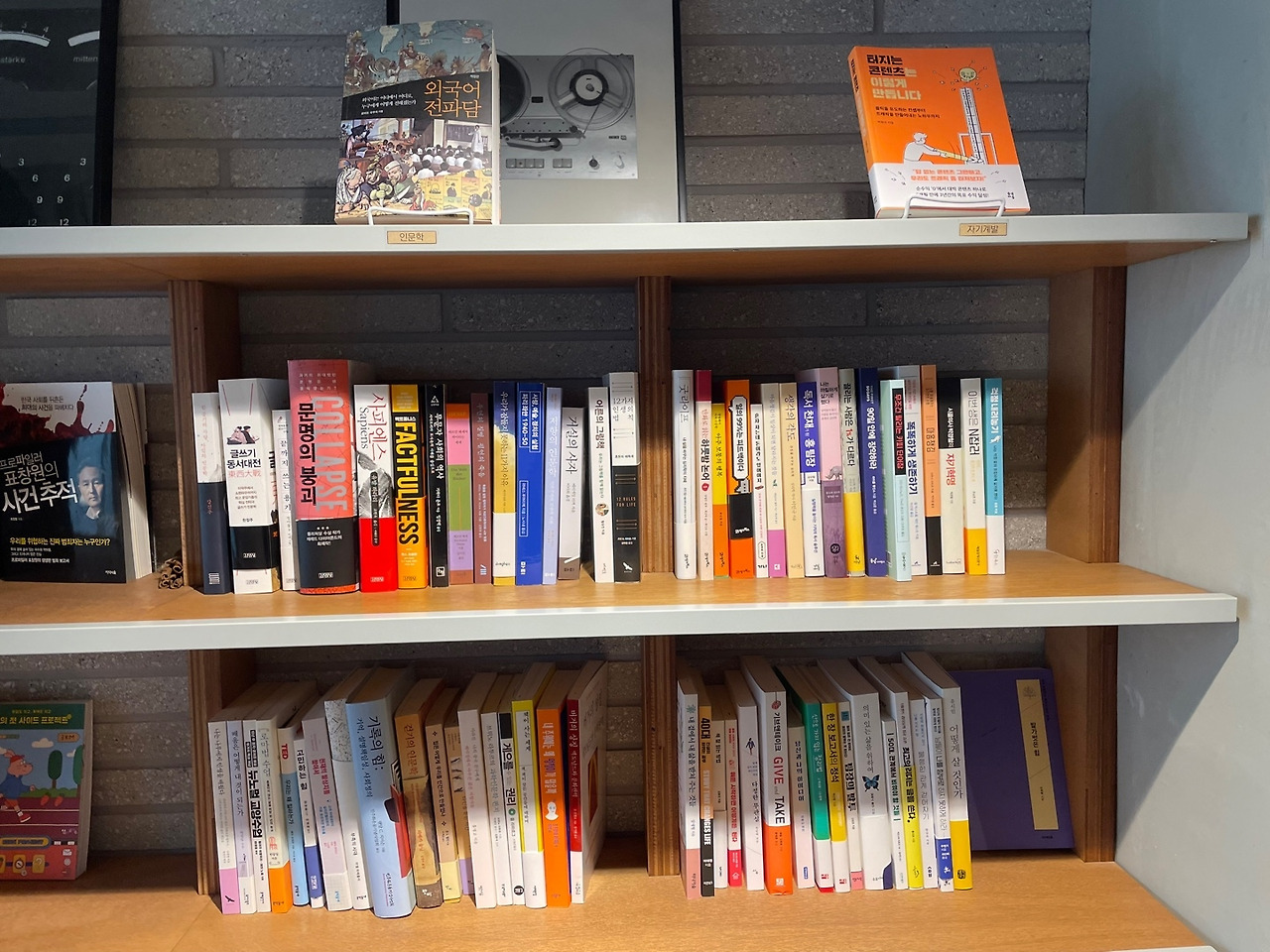 서재 욕심이 있다. 지의 거인 다치바나 다카시의 '고양이 빌딩'처럼 건물을 책으로 채우려는 야심 찬 계획도 갖고 있다. 이곳은 미래 서재의 분위기로 참고할만했다. 오길 잘했다는 생각이 들었다. 무겁지도 가볍지도 않은 우드톤, 차분한 향기와 꽂혀있는 센스 있는 책들까지... 솔직히 기대이상이었다.