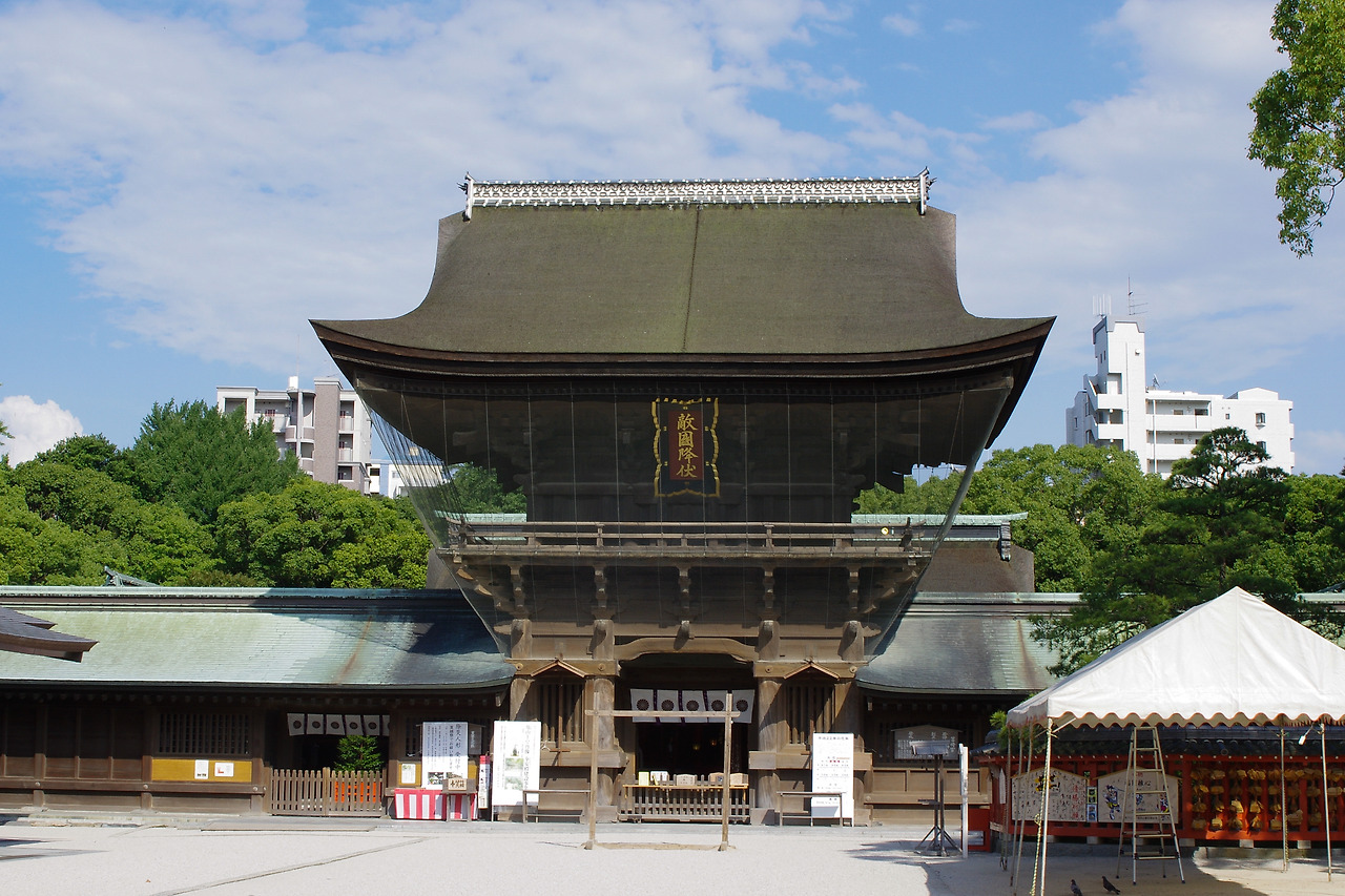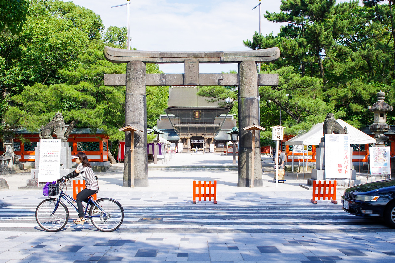 입구에 설치된 안내판에 한글 설명문이 있어 잠시 서서 물그러미 읽어보았다. 이 곳은 하코자키궁 신사인데, 923년에 지어져, 1274년에 원나라 군에 의해 화재에 손실되었다가, 1500년대에 재건이 된 곳이다. 사원 내 건물이 국가 중요문화재라고 한다.
