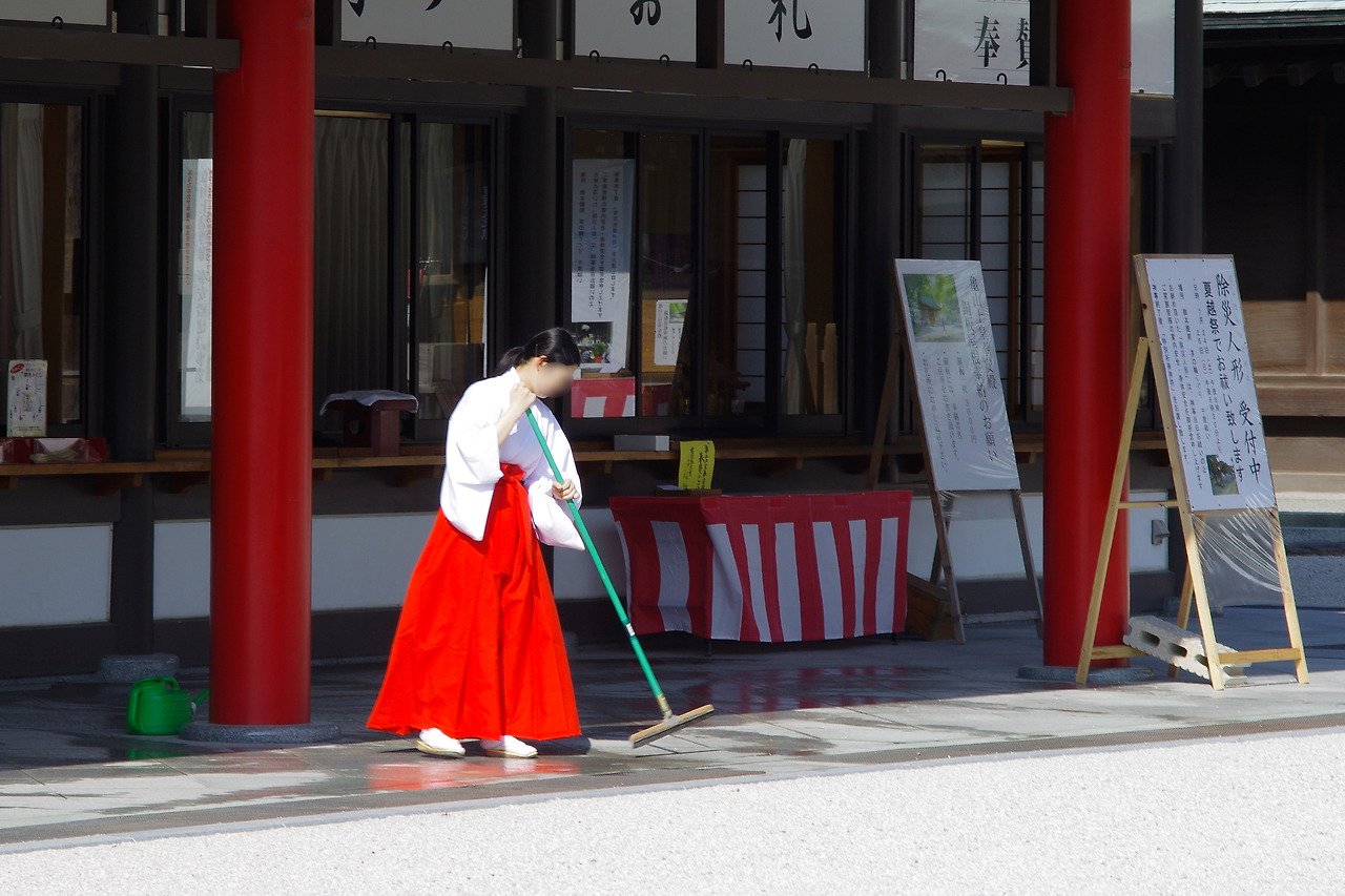 붉은 기둥의 건물 앞에서 전통의상을 입은 무녀(?)가 마당을 쓸고 있는 모습이 보인다. 여행채널에서 보던 모습이 눈 앞에 놓여있으니 신기하기도 했고, 내가 정말 일본에 왔음을 다시금 느꼈다.