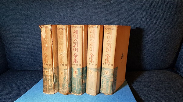 세월이 흘렀지만 2020년 처가댁 책장에도 1970년대에 출판된 전집들이 꽂혀있었다. 서양 고전 문학 작품을 모은 전집과 동서양 철학가들의 사상을 담은 전집이 책장 맨 위 한켠에 박혀있었다. 책들은 먼지를 품었지만 어두운 구석에서 빛나고 있었다. 그 곁에서 내 눈을 사로잡은 책들이 있었다. 책등의 글씨도 희미한 <셰익스피어 전집> 다섯 권. 나는 ‘심 봤다’를 외치며 책을 펼쳐보았다.
