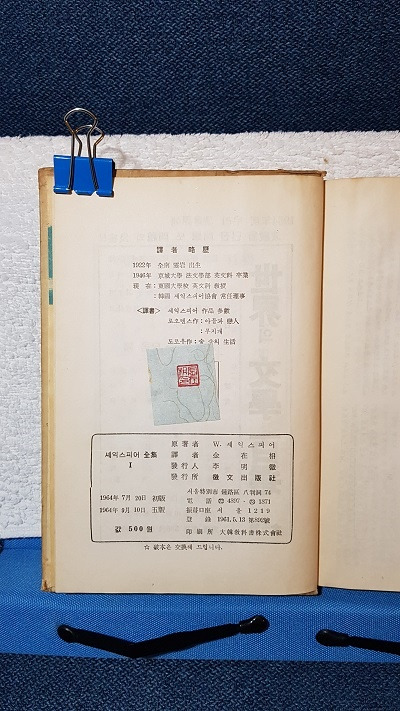 ▲ 1964년에 김재남이 번역하고 휘문출판사가 낸 <셰익스피어 전집> 중 크레딧 페이지. ⓒ 강대호