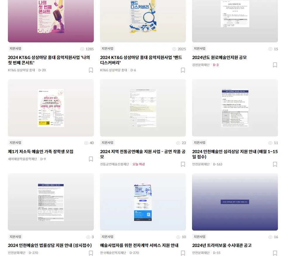 매년 각지역, 또는 국가에서 예술인들을 위한 지원 사업을 한다.