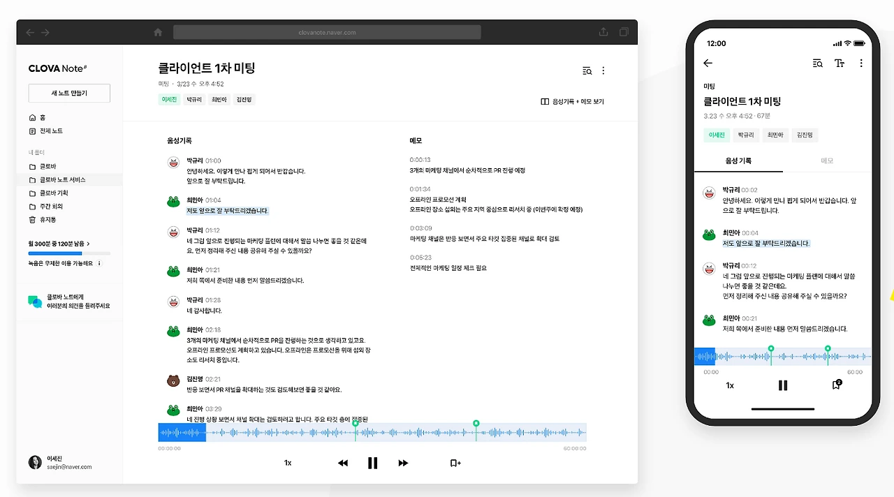 해당 개념을 더 잘 이해하기 위해 클로바노트를 예시로 셀프 스터디를 진행했습니다. 클로바노트는 AI 기술을 활용한 음성 기록 관리 서비스입니다. 회의록을 작성하거나 녹취록을 작성해야 할 때, 중요한 내용을 놓치거나 녹음했던 내용을 몇 번이고 반복해 들어야만 했던 사람들에게 도움이 될 수 있습니다.