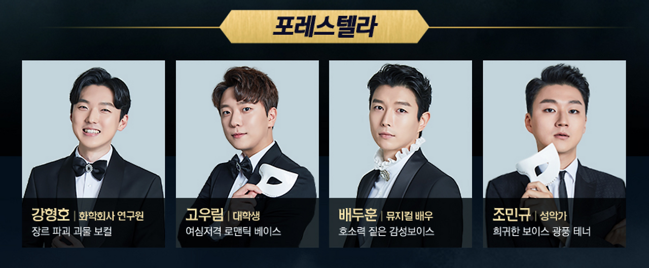 주로 저음 목소리를 좋아해서 베이스에 귀가 가는 편인데 시즌1에서는 손태진 씨 목소리가, 시즌2에서는 고우림 씨 목소리가 참 좋았다. 시즌1 때는 손태진 씨 목소리가 제일 좋았지만 팀 케미로는 <인기현상>팀이 좋아서 그 팀에 투표했었는데 안타깝게 2위를 했었다. 이번 시즌에서는 마지막까지 갈팡질팡하다가 <포레스텔라>팀에 투표했는데 1위 하셔서 기분이 좋았다! (내가 뽑는 사람이 1등을 하는 경우도 있구나 ㅜㅜ)