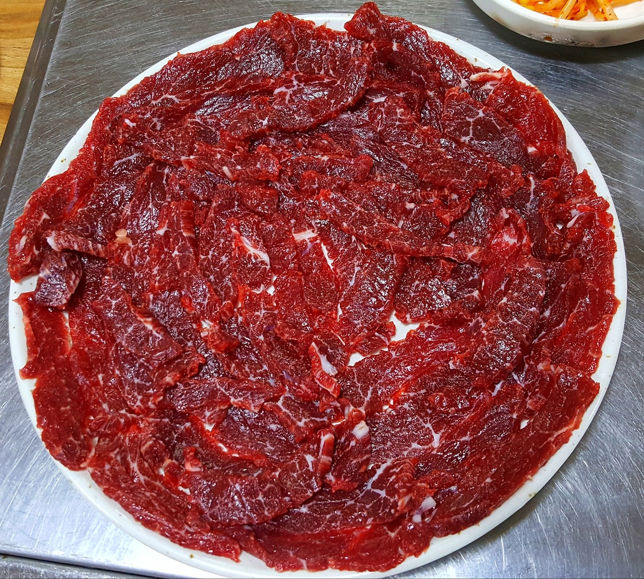 구이용처럼 썰어 한장씩 올린 생고기