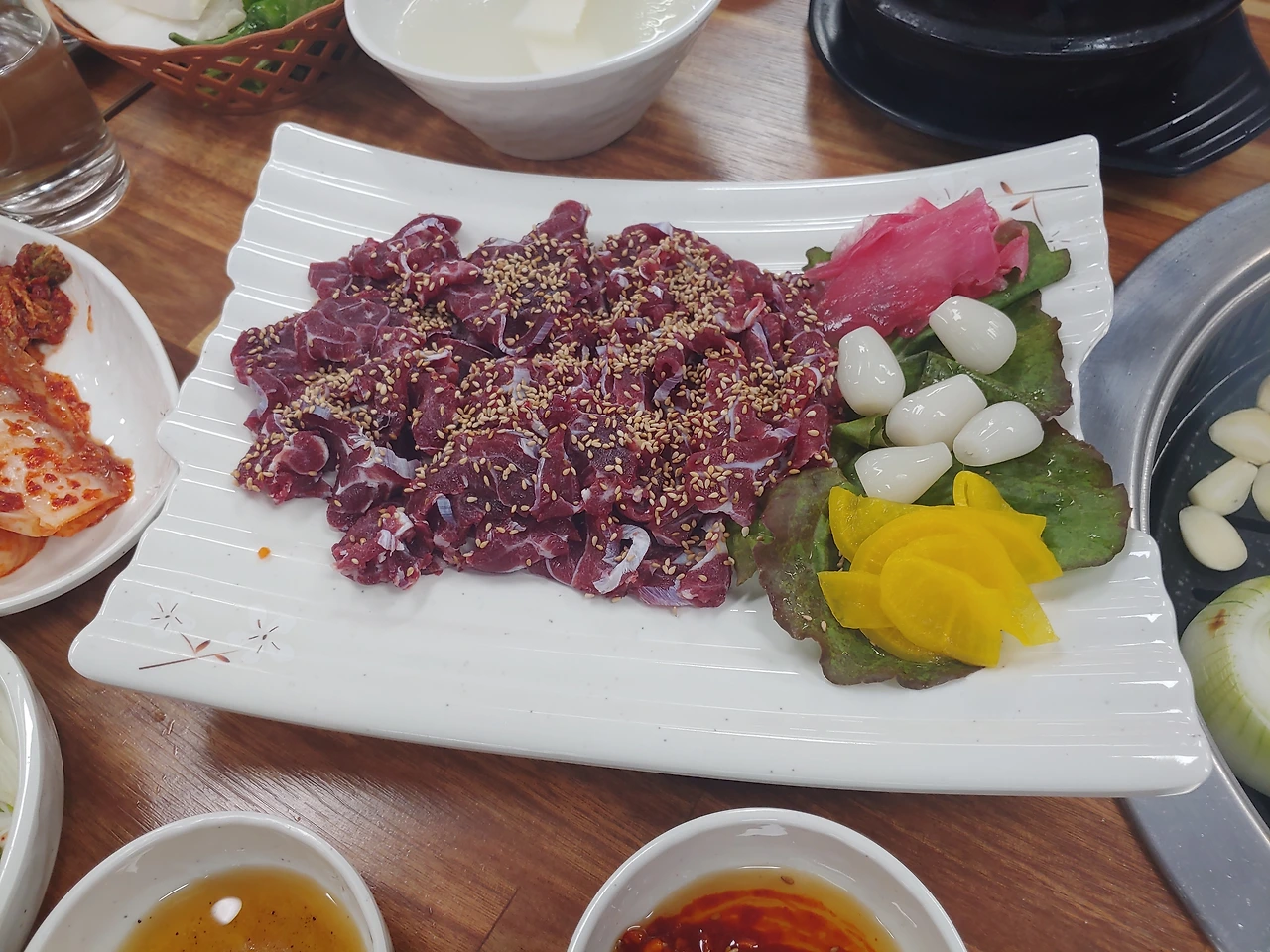 깨가 너무 많이 뿌려졌던 생고기