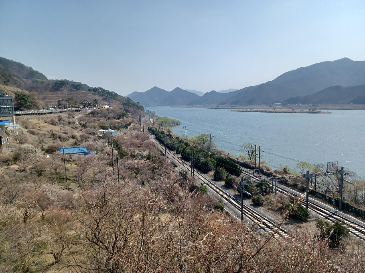 예년보다 높은 기온에 꽃이 일찍 피어 절정의 아름다움을 볼 순 없었다. 원동의 매화는 대부분 흰색에 가까운 연분홍빛을 띠고 있었다. 위에서 내려다보는 매화는 하얀 팝콘이 나무에 주렁주렁 열린 것 같기도 하고 눈꽃송이를 매단 것처럼도 보였다. 연분홍 사이로 보이는 홍매화의 붉음은 고혹적인 매력을 뽐낸다. 규모가 커지않아 오히려 아기자기하게 느껴지는 매화농원과 낙동강. 그리고 강변을 따라 이어진 철길은 낭만 그 자체였다.