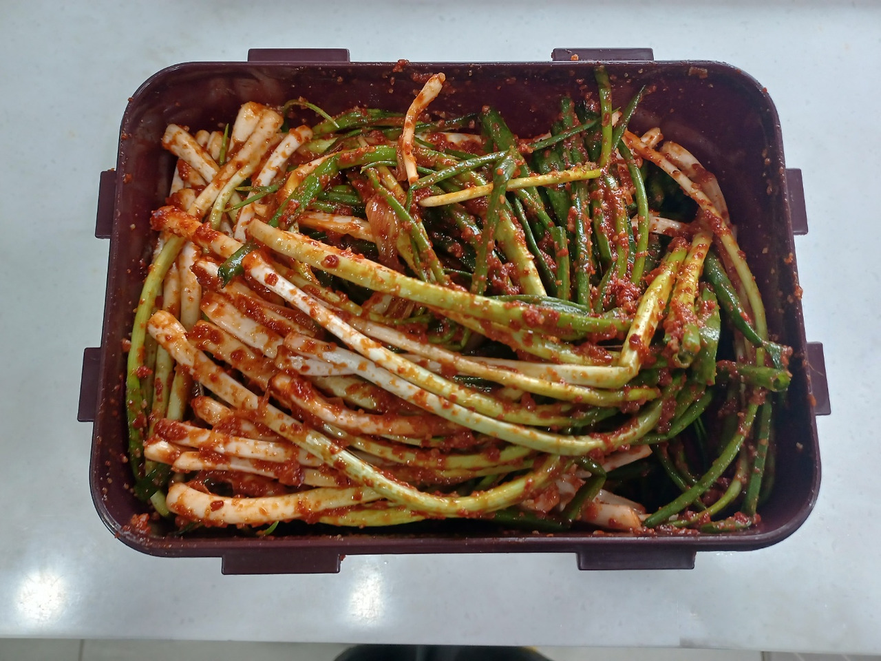 고춧가루와 매실액, 젓갈과 참치액을 넣어 김치 양념을 완성한 후 대야에 쪽파를 담고 머리부터 양념을 바른다. 세게 치대듯이 하면 쪽파 머리가 놀라 요동치니 살살 달래듯이 바른다. 한가닥을 돌돌 말아 입에 넣어 보니 간이 딱 맞다. 생으로 먹어도 맛나니 익히면 한층 깊은 맛이겠지. 벌써부터 짜장라면에 잘 익은 파김치 한 가닥 올려 먹을 생각으로 ‘츄릅’ 입안에 침이 고인다.