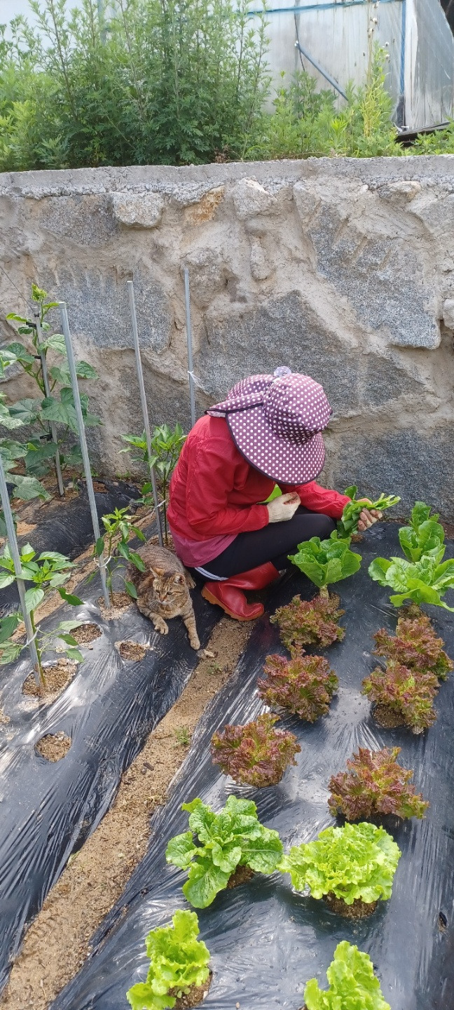 아침마다 푸짐한 샐러드가 되어주길 기대하며 양상추, 꽃상추, 로메인, 청상추 4종류나 심었더니 많아도 너무 많다. 마을엔 집집마다 작은 텃밭이 있으니 나눠 먹을 사람도 없다. 그렇다고 시내 사는 지인에게 상추 몇 포기 가지러 오라기엔 길이 멀다. 작년에도 둘이 먹기엔 양이 많아 조금만 심자고 했는데 어쩌다 보니 또 많아졌다. 한창 자랄 땐 잎을 따는 것도 씻는 것도 일이다.