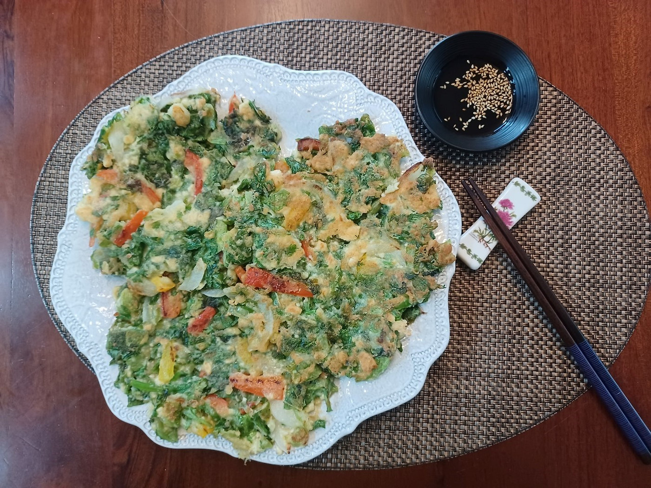 사실 전은 뭘로 부쳐도 맛있잖아요. 큰 양푼에 상추 썰어 넣고(스트레스 쌓이신 분들은 누구 머리라 생각하고 박박 찢어 넣으세요) 부재료는 있으면 넣고, 없으면 말고. 두부를 으깨 넣으시면 단백질 보충도 되고 몽글하고 부드러운 식감도 좋아요. 간은 취향껏. 전 참치액으로 합니다. 감칠맛이 있거든요. 맛을 한 차원 높이실 분들은 새우나 오징어를 넣으시면 되지만 굳이. 손쉽게 있는 상추나 활용하자고요.