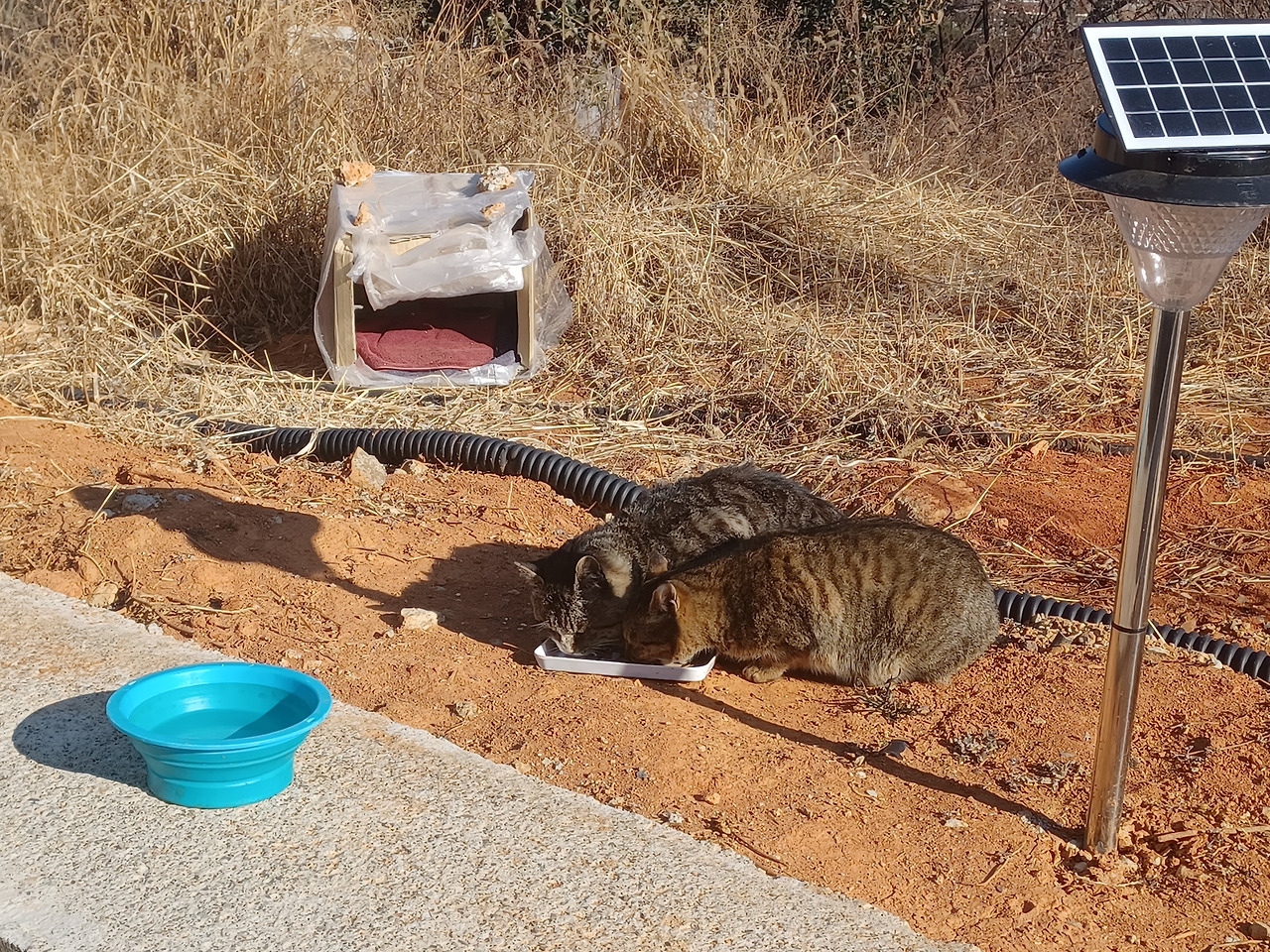 가까이 두고 싶다는 욕심만으로 시작했다가 나야말로 녀석들의 무한 매력에 꽁꽁 묶여 버렸다. 이전엔 집을 비워도 반려견 두강이만 신경 쓰면 되는데 지금은 냥이들 밥 걱정, 잠자리 걱정까지 한다. 비바람이 불면 밤새 안녕한지, 여름 한낮에는 파라솔을 펼쳐 아이들이 쉴 그늘을 만들어 주고 아침에 일어나면 문밖에 미리 와 기다리고 있는 아이들 밥 먼저 챙기게 된다. 녀석들이 놀다가 늦게 오면 밥 먹다가도 뛰쳐나간다.
