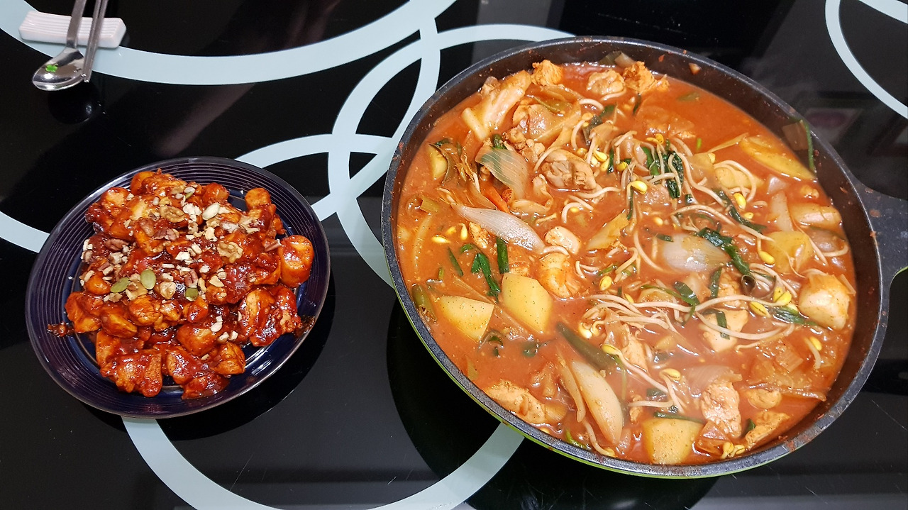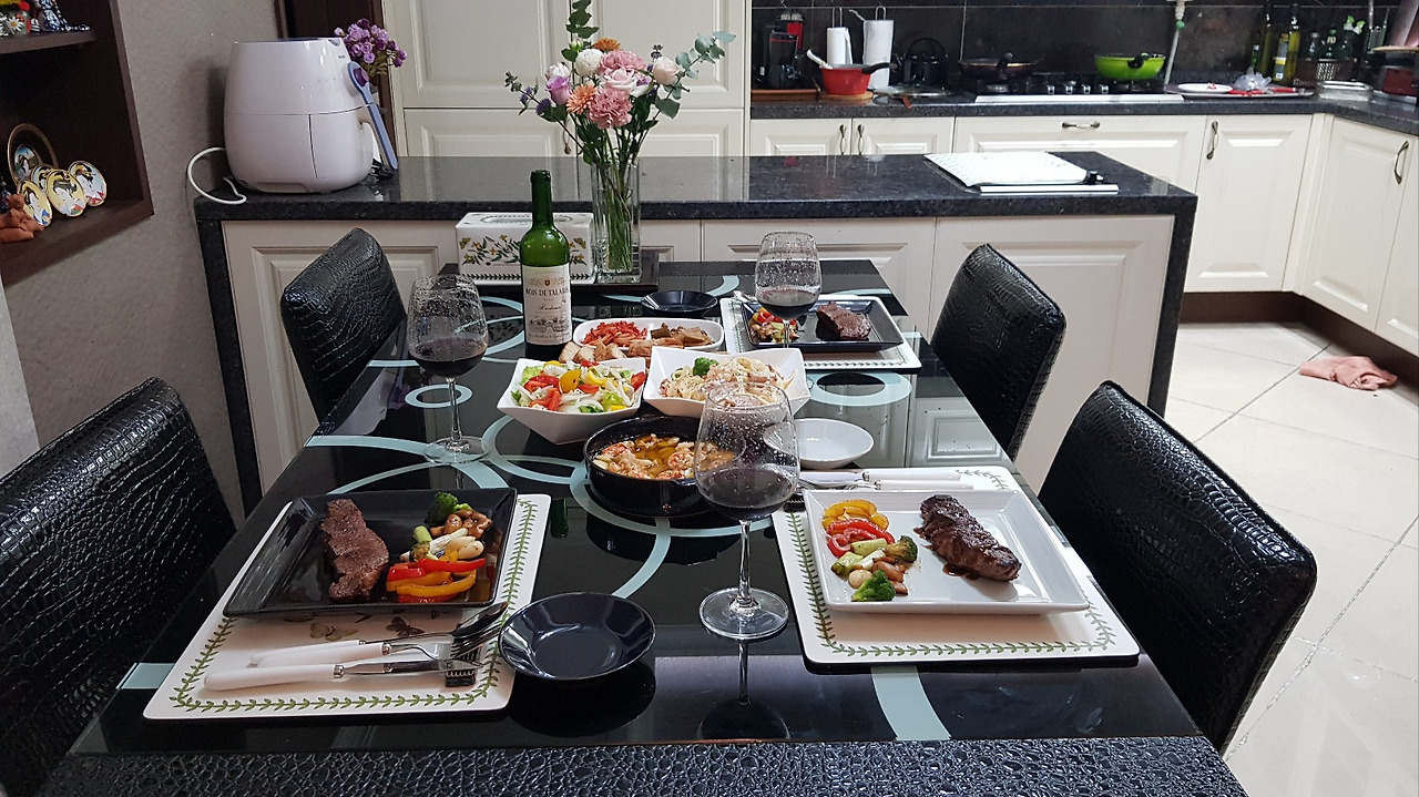 아들은 요리에 진심이다. 자주는 못 하지만 마음먹고 하면 그럴싸하게 한 상을 차려 냈다. 몇 년 전 사회복무요원으로 2년간 집에서 함께 지낼 때는 종종 별식을 만들어 주곤 했다. 내 생일엔 스테이크와 파스타, 감바스로 근사한 레스토랑 못지않게, 국물요리를 좋아하는 아빠 생일에는 삼척 물 닭갈비나 감자탕을 만들어 주었다. 따로 사는 요즘은 통 그럴 기회가 없었다. 아마 몇 년 만인 듯하다.