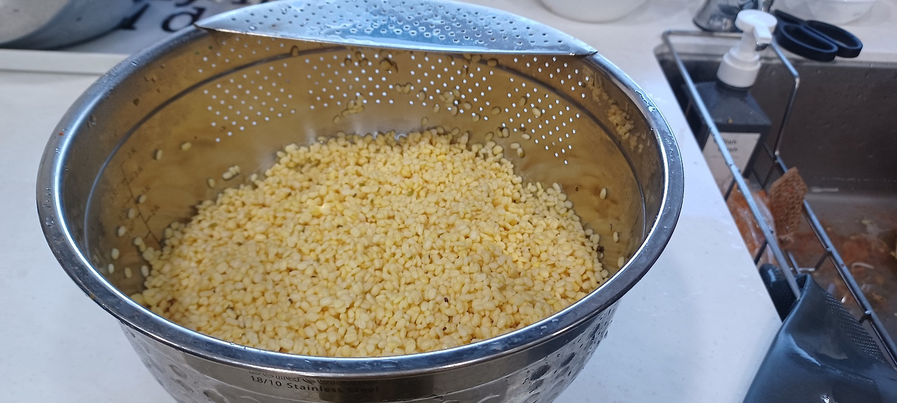 이왕 하는 것, 푸짐하게 먹을 요량으로 녹두 4컵을 불렸다. 양푼에 담긴 반죽을 보고 남편은 ‘큰 손 ㅇ여사’라며 고개를 절레절레 흔들었다. 소매를 걷어붙이고 시작했다. 지글지글 기름 튀는 소리가 식욕을 자극했다. 역시 빈대떡은 기름 맛인가. 건강은 잠시 접어 두고 맛을 위해 전집에서 하는 것처럼 기름을 넉넉히 둘렀더니 겉바속촉. 이번엔 제대로다. 완벽한 맛을 재현했다고 뽐내며 요태기를 날려 버렸다. 무려 15장. 엄청난 양을 보고 남편의 입이 귀에 걸렸다. 빈대떡 접시를 앞에 두고 막걸리 잔을 기울이며 서로에게 덕담을 건넸다.