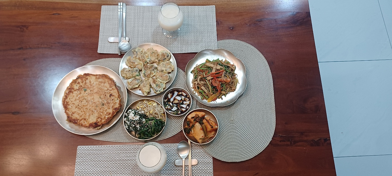 명절 당일은 우리 세 식구가 오붓하게 보낸다. 객지살이를 하는 아들이 모처럼 오니 그냥 넘기긴 서운해서 남편과 나, 아들이 각자 원하는 음식 한 가지씩을 준비했다. 이번 설에는 아들이 오지 못했다. 둘만 보내는 명절은 처음이다. 겉으로 무심한 척 하지만 남편의 옆모습이 쓸쓸해 보였다. 빈대떡과 막걸리 한 잔이 위로가 될지.