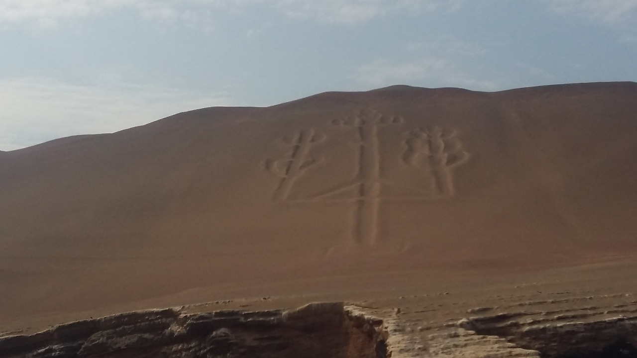 파라카스 선착장에서 쾌속선을 타고 태평양의 흰 파도를 가르며 10여분 넘게 달리자 건너편 모래 언덕에 선인장같이 생긴 형체가 보였다. 폭 70m, 길이 189m에 깊이 1m의 스페인 정복자들이 촛대모양으로 생각해서 '칸델라브라'라고 이름 붙였다는 신비로운 그림이다. 기원전 200년경에 만들어졌을 것이라 추정하지만 누가, 왜 만들었는지 모른다. 모래에 새겨진 그림이 어떻게 훼손되지 않고 지금껏 보존되었는지가 가장 궁금했는데, 비가 거의 오지 않는 지역이라 그림이 바위에 새겨진 것처럼 그대로 굳어졌다고 한다. 분명 인간이 했지만 자연의 도움 없이는 불가능한 일이다.