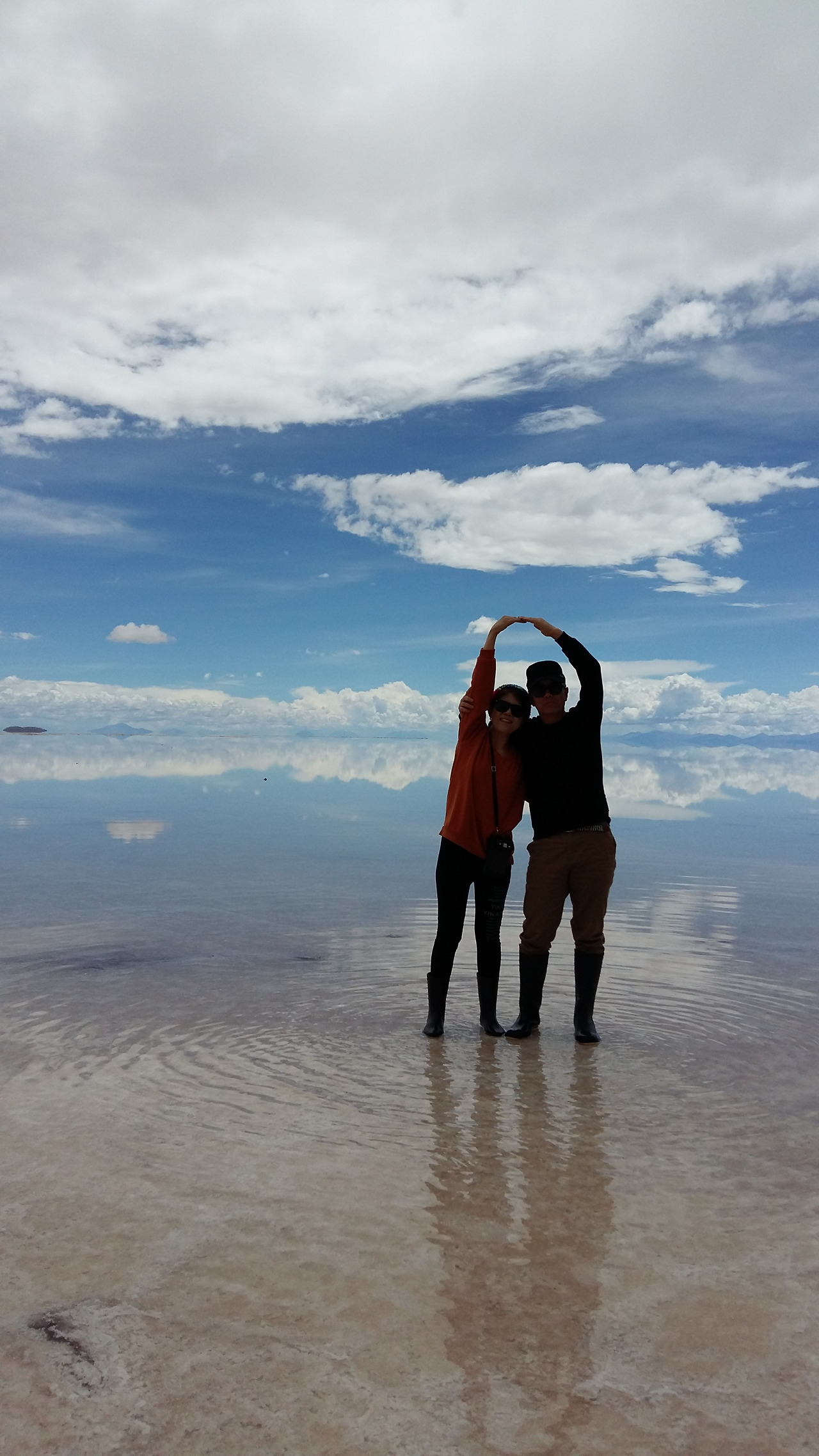 전날 비가 적당히 내려준 덕분에 우리는 우유니의 실물을 영접할 수 있었다. 여기저기서 우와, 우와 하는 탄성이 터져 나왔다. 어디가 하늘인지 호수인지, 사막인지 구분할 수 없는, 내가 발 딛고 서 있는 곳이 거대한 거울이 되어 끌어당기는 것 같아 숨이 막힐 정도로 아름답고 신기했다.