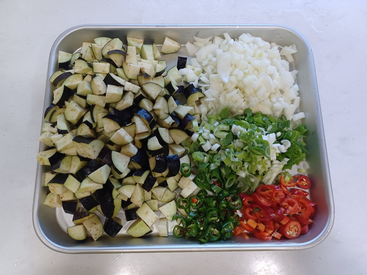 몇 년 전 근무했던 학교에서 텃밭 한 이랑을 분양해 준 적이 있었다. 그때도 내가 우겨 가지를 심었다가 감당 못할 양으로 난감했었다. 남편과 아들은 가지의 물컹한 식감이 싫다며 나물이나 볶음을 하면 두어 젓가락도 채 먹지 않았다. 엄청난 양의 가지를 소비하기 위해 가지 탕수, 가지 고기 말이, 가지 양념구이 등 웬만한 가지 요리는 다 해 본 것 같다. 가지를 많이 소비하면서도 남편의 입맛도 만족시킬 요리가 필요하다.