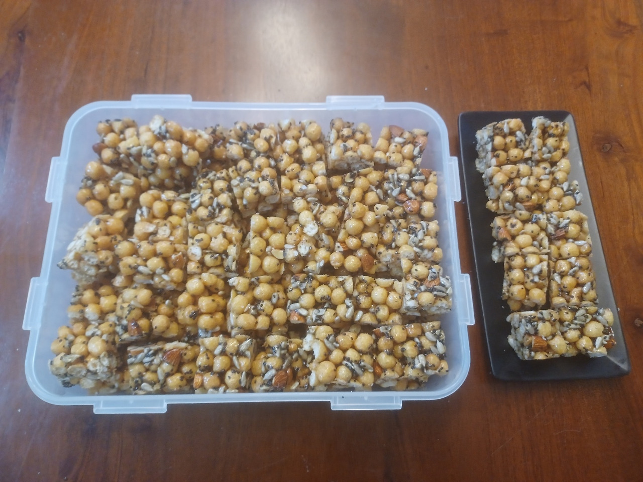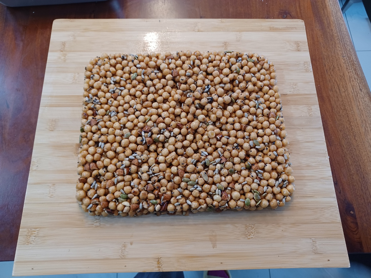 계량컵과 저울을 이용하여 한번에 들어갈 알알이와 견과류를 비롯하여 설탕, 물엿, 올리고당의 양을 먼저 측정해 본다.