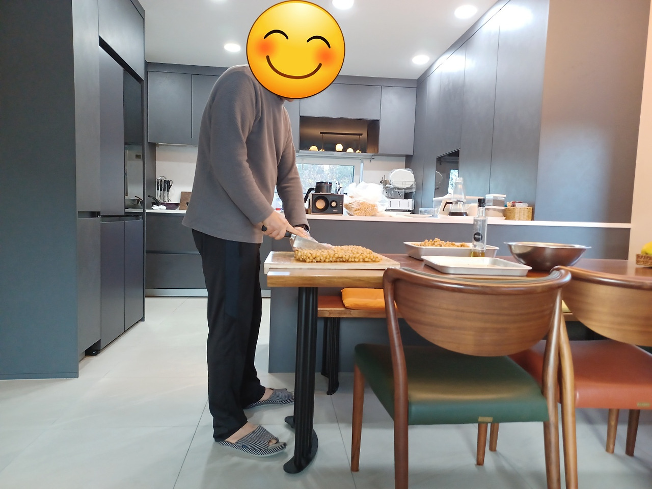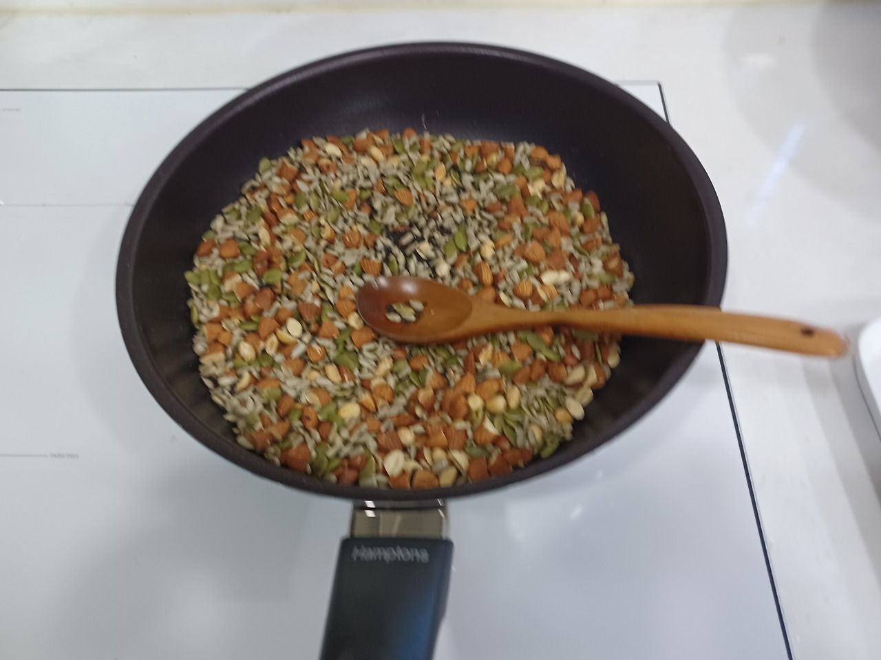 1) 견과류를 마른 팬에 남편을 볶듯이 들들 볶는다.