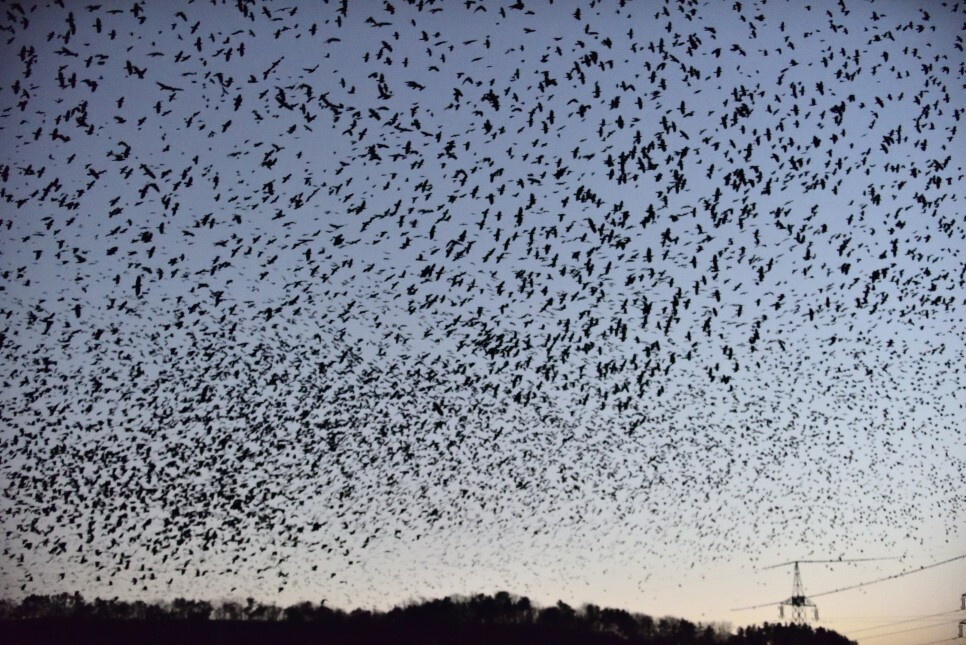 처음엔 떼까마귀를 보는 울산 시민의 시선이 곱지는 않았다. 너무 많은 숫자에 공포감을 느끼기도 하고. 특히 잠자리와 이동 동선에 있는 동네 주민들이 불편과 피해를 호소하는 사례도 많았다. 하지만 어느새 철새 체험 생태관광지로 외지 사람들이 찾는 곳이 되었다. 내게도 그들은 더 이상 공포의 대상이 아니라 정겹게 인사를 나누는 겨울 손님이다. 곳곳에서 마주치는 까마귀들과 ‘안녕, 또 만났네’라든가 ‘아직도 자러 안 갔니?’라고 말을 건네본다.