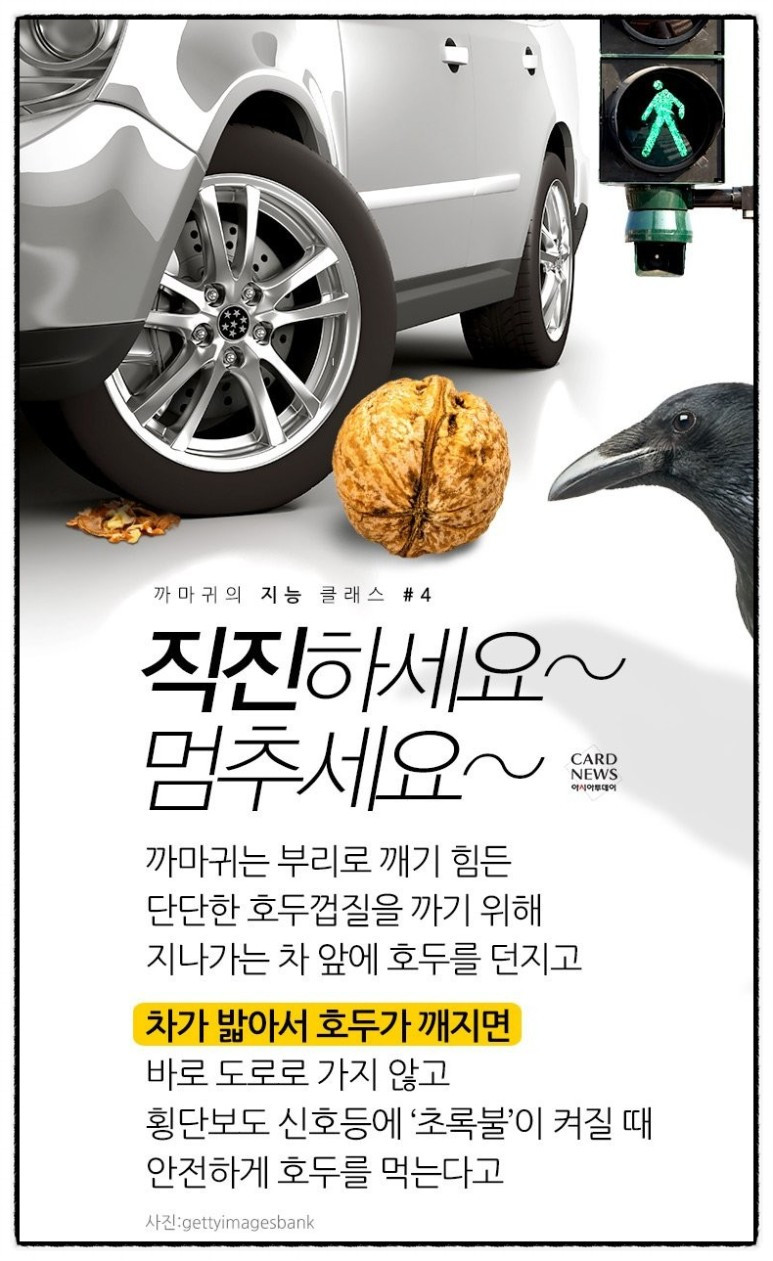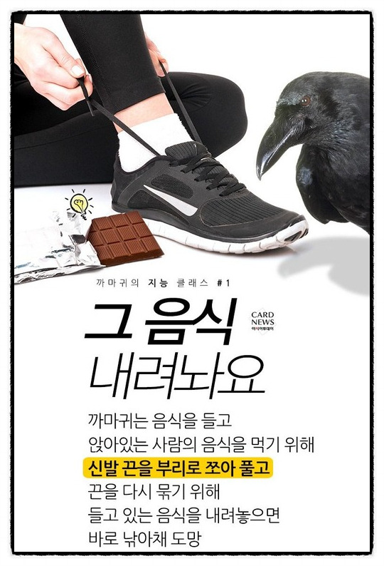 까마귀의 지능에 대한 또 다른 사례를 보자.