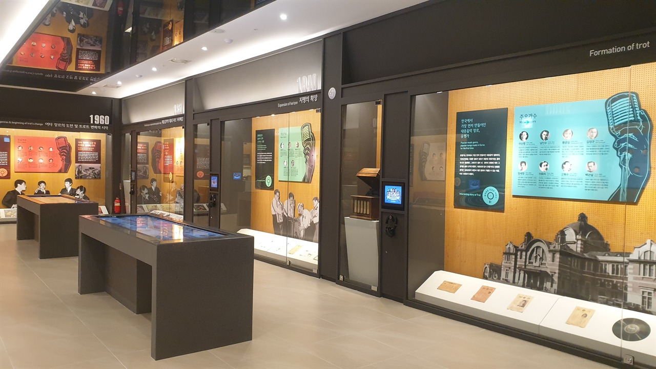어릴 적 아버지는 늘 라디오를 틀어 놓으셨다. 내 의지와 상관없이 트로트는 십 대의 내 귀를 파고들어 나를 애 늙은이로 만들었다. 그 시절의 웬만한 가수 이름은 물론 노래를 흥얼거리기도 했다. 그때 들었던 낯익은 가수들 이난영, 황금심, 고복수 등 전설적인 원로가수들의 흔적이 고스란히 남아 있었다. 일제 강점기의 애환을 담은 노래부터 이미자, 남진, 나훈아, 하춘화 등 여러 가수들의 얘기들이 펼쳐진다. 가수들의 대표곡을 그곳에서 직접 들어 볼 수 있었는데 생각보다 음질이 아주 깨끗했다. 그리고 앳된 얼굴의 앨범 재킷을 보는 재미도 쏠쏠하다.