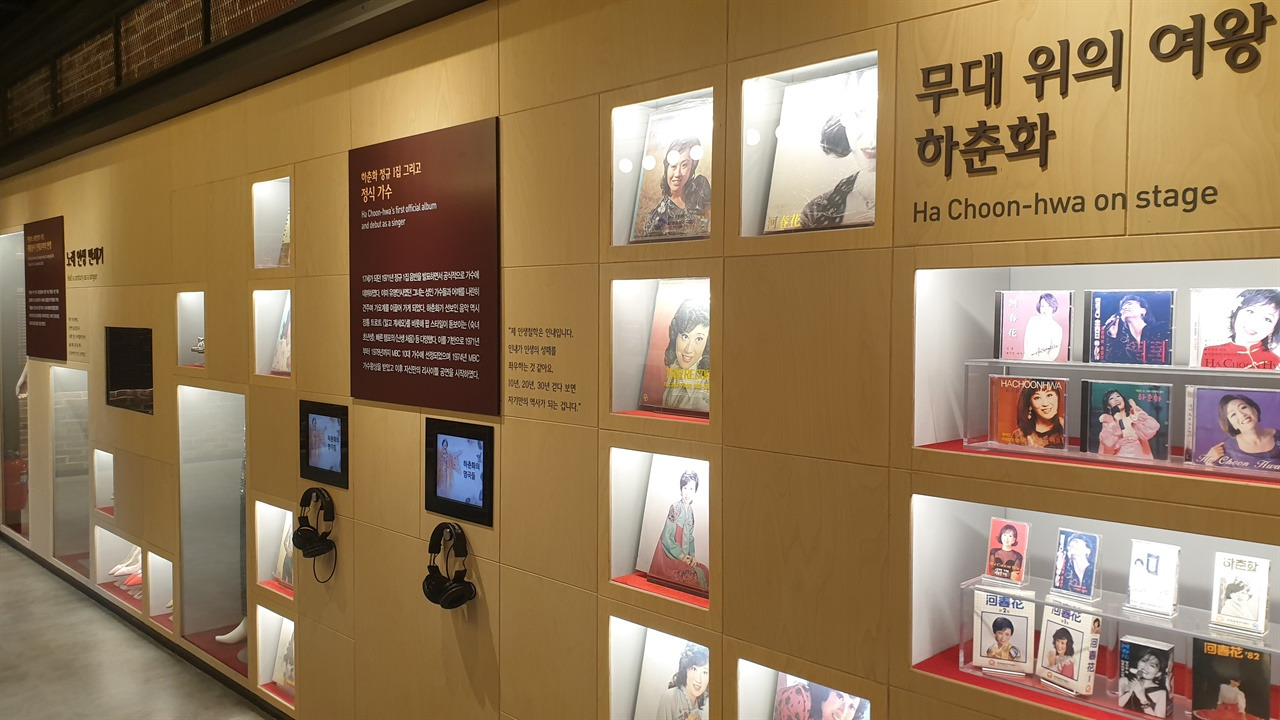 2층은 하춘화 전시관으로 영암이 고향인 하춘화의 아버지가 딸이 데뷔한 1961년부터 50년 남짓 모은 트로트 관련 자료와 음반, 공연 의상과 사진들이 전시되어 있다.