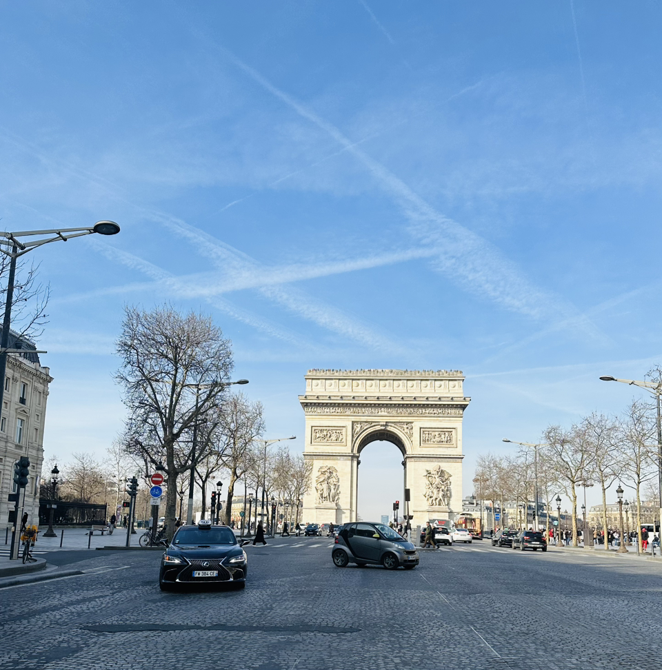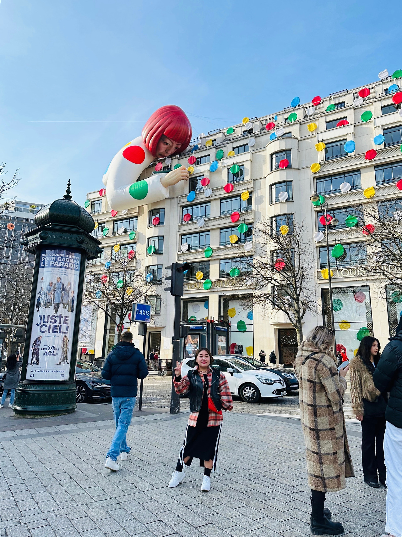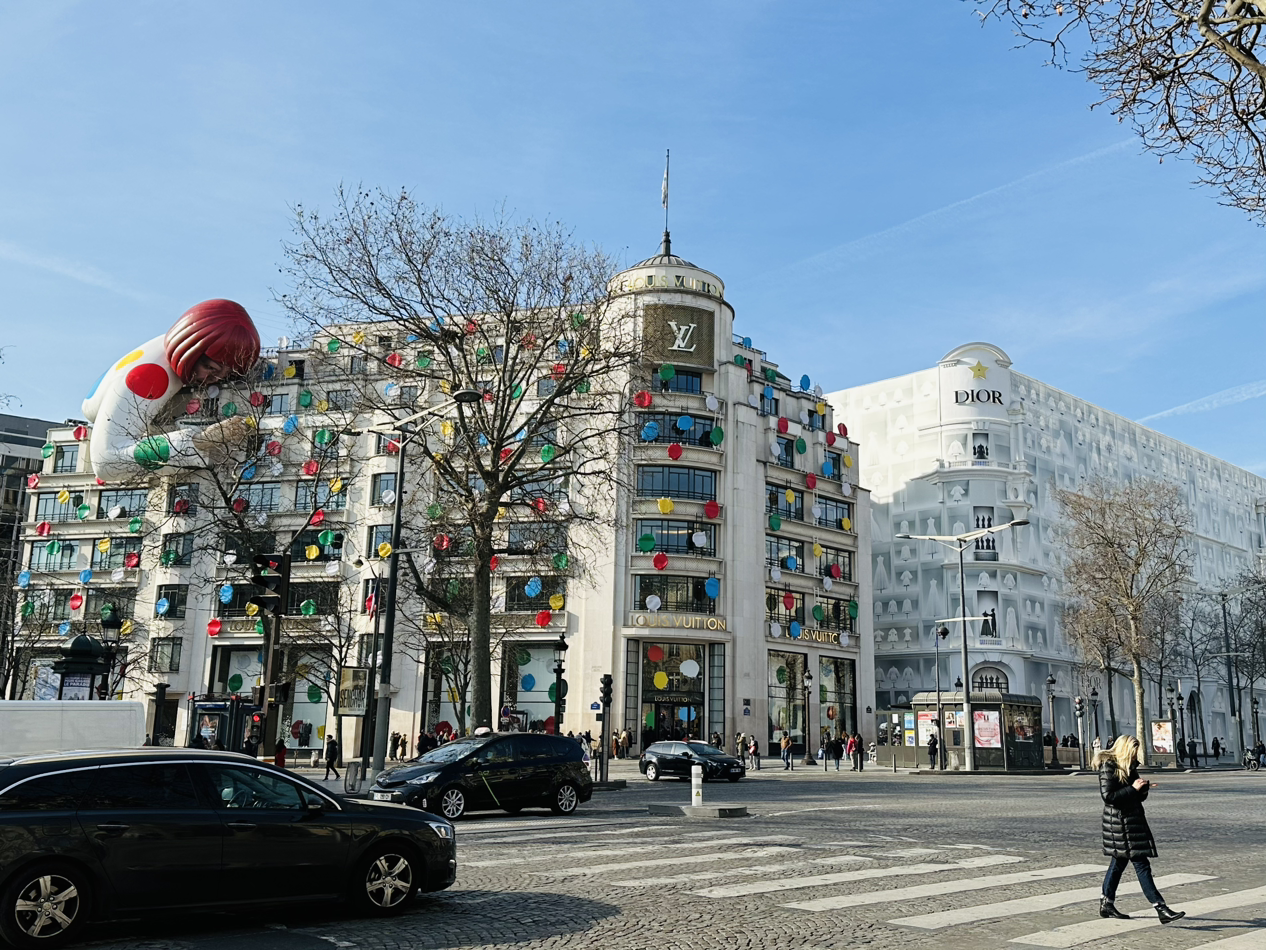 여행 성수기는 아니라 거리에 사람이 많지는 않다. 익숙한 이름들의 쇼룸들을 지나 쿠사마 야요이와의 콜라보로 샹젤리제의 랜드마크가 돼버린 루이비통이 보인다. 수빈이 말로는 오픈런 줄이 길거라 예상하더니 아니나 다를까 입장하기엔 시간이 꽤 걸릴 것 같다. 수빈이가 환공포증이 있음에도 유명 건물이라 보고는 싶었다며 줄까지 서고 싶진 않단다. 몇 장 사진에 담긴 루이비통과 이별하고 에투왈 개선문으로 이동했다. 파란 하늘과 봄 같은 나의 옷차림은 이질감이 없다. 다만 지나가는 빠리지앵들은 아직 겨울이다.