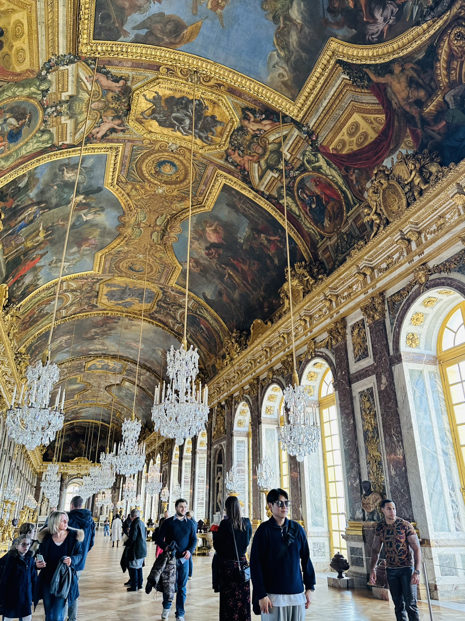 몇 점의 조각품을 감상하고 왕의 아파트멍을 감상한다. 절대 권력을 꿈꾸고 실현하기 위해 지은 궁전답게, 극에 달하는 사치와 화려한 생활을 하였음은, 벽면 가득한 초상화들과, 계절마다 바꾸었다던 페브릭 벽지, 화려한 샹들리에와 침대를 마주 한 곳에 그 귀하다던 유리를 가득 끼워 넣은 통 창들을 보면 자연스레 그 때의 화려함이 상상이 간다.