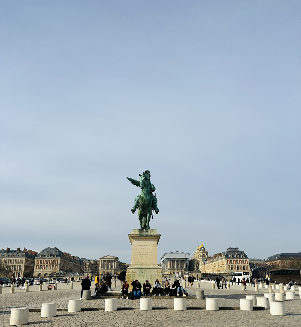 말을 타고 병사들을 호령했던 루이 14세의 당당한 환영을 받으며, 오늘의 샤또 드 베르사유에 다가간다.