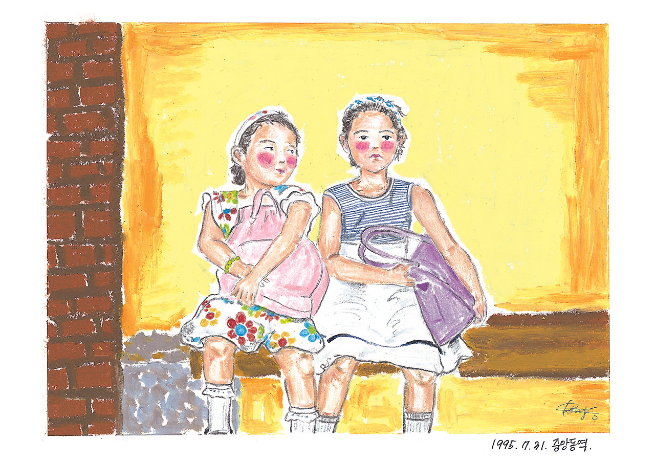 지하철역 벤치에 우리를 나란히 앉히고 찰칵, 셔터를 눌러 주셨다.
