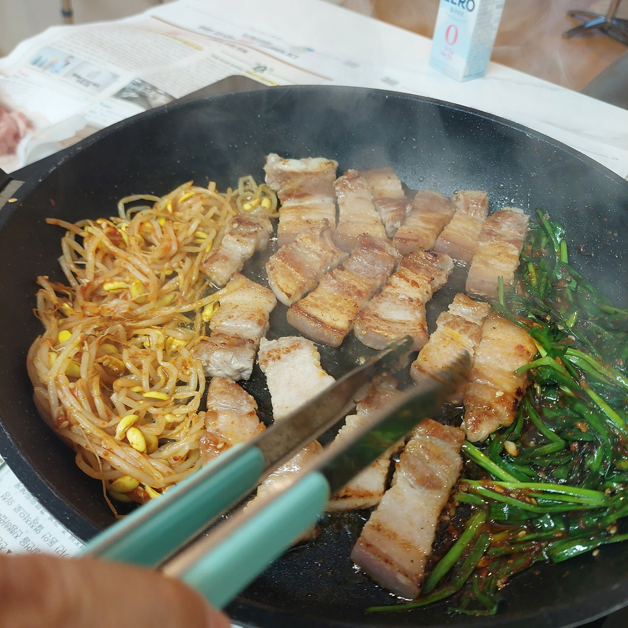 짐을 다 풀고 삼겹살 파티 준비를 시작한다.
