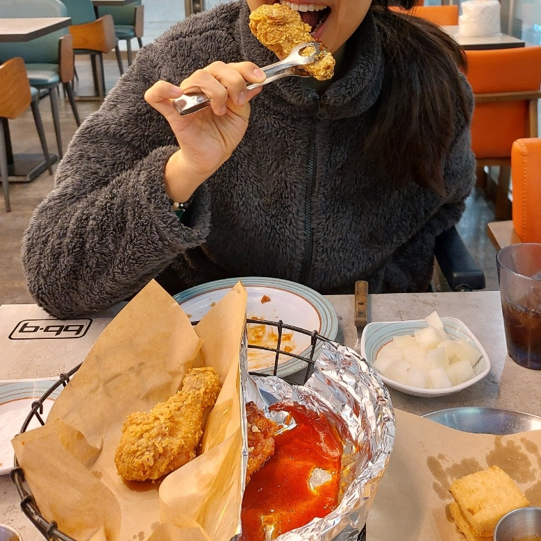 남편이랑 깔깔대며 치킨을 먹다 보니