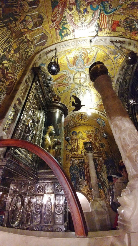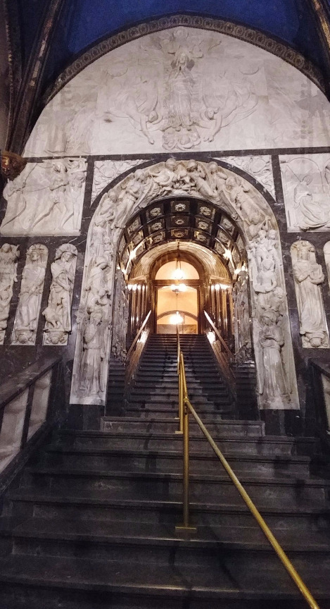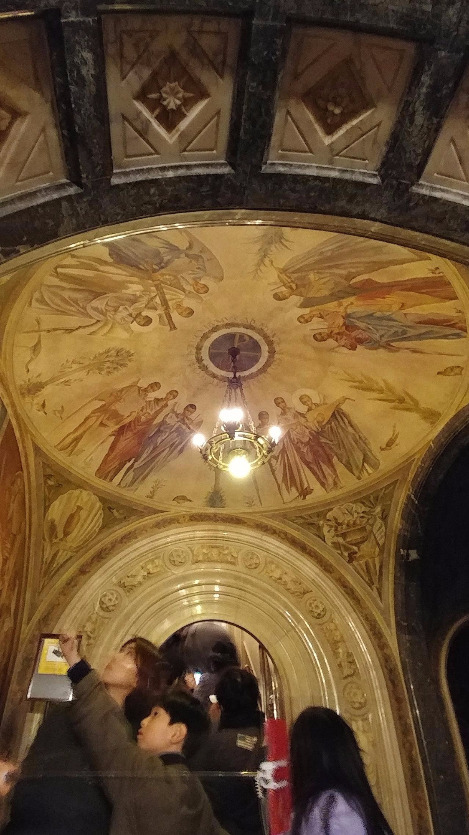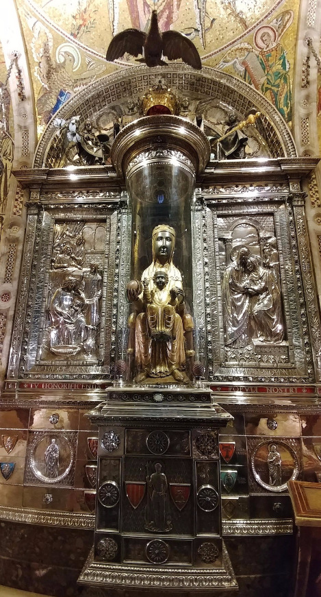 검은 성모상 뒤 쪽에는 둥근 방이 있는데, 성모상이 보이는 바로 뒤쪽에는 예수님이 못 박히신 십자가 제단이 있으며, 둥근 벽면은 스테인드 글라스 유리창들과 각종 조각 장식들로 화려하게 꾸며져 있다. 이상하게도 관광객으로 보이는 몇몇 사람은 그 방에 말없이 앉아 있기도 했는데, 화려하고 멋진 장식들을 구경한다기 보단, 뭔가 경건하게 명상을 하는 듯했다. 묘하게 마음이 편안한... 안정감이 드는 방이었다.