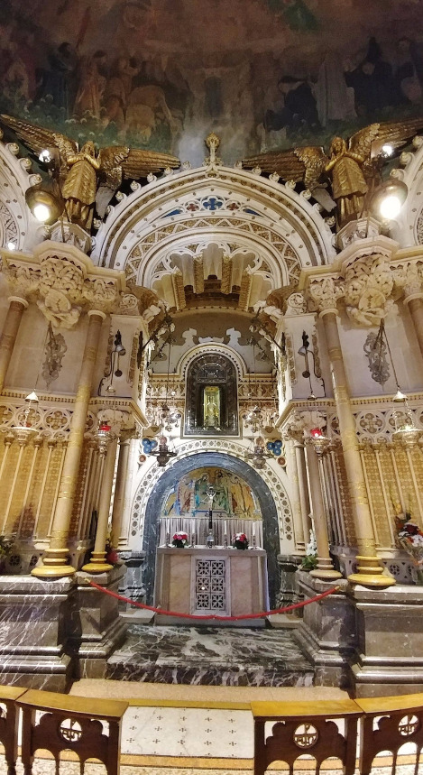 이곳이 특별한 것은, 1100년에 목동들이 동굴에서 발견했다고 알려진 검은 성모상이 있기 때문이다. 1881년 '교황 레오 13세'가 성모 재림까지 인정하면서, '카탈루냐 성모'로 이름 붙여졌으며, 치유의 능력이 있다고 알려지면서, 많은 신자들이 성모상을 보러 이곳을 찾는다. 신도들은, 유리관 밖에 만질 수 있도록 되어 있는 알을 쓰다듬으며, 검은 성모상 앞에 건강을 기원하는 기도를 드린다. 검은 성모상은, 기도하는 신도석 정면, 이층쯤 되는 높이에 있으며, 좁은 계단으로 들어서게 되어 있어서 줄을 서서 차례로 들어 가 기도하고, 반대쪽으로 빠져나가게 되어 있다.
