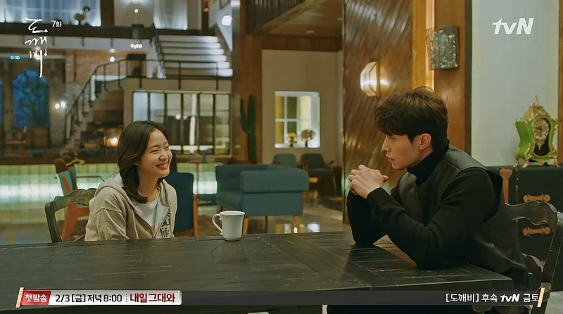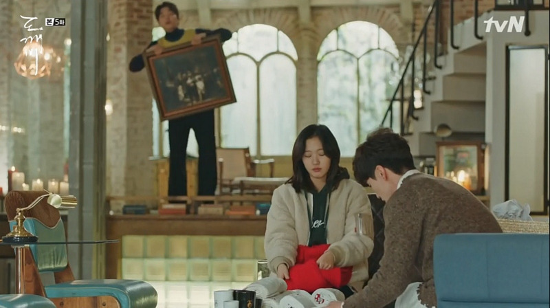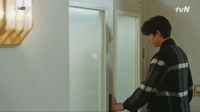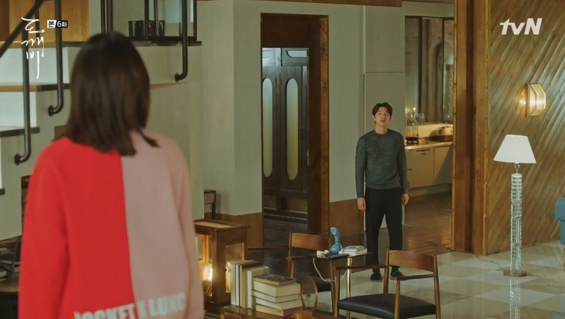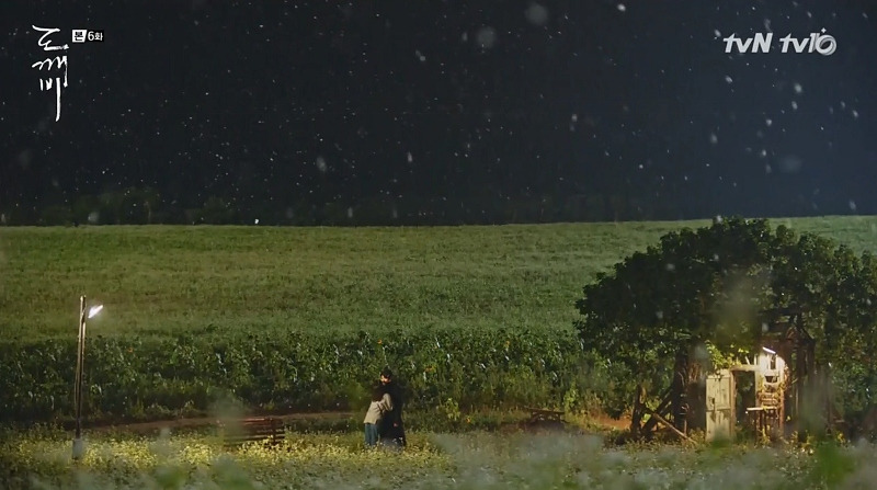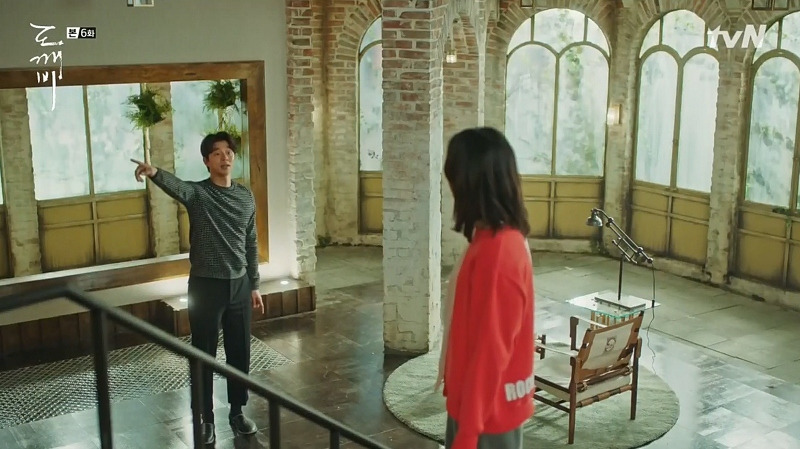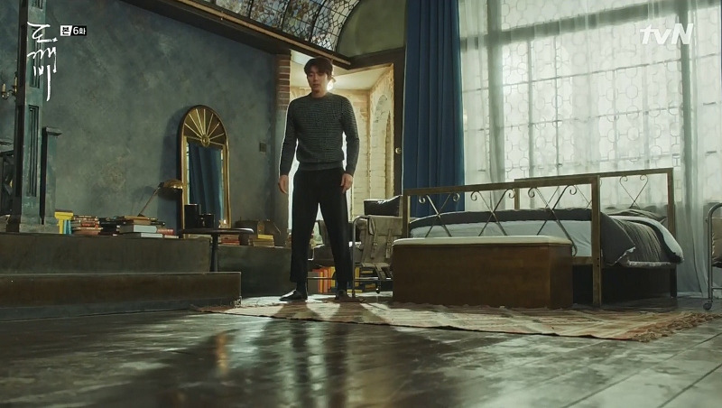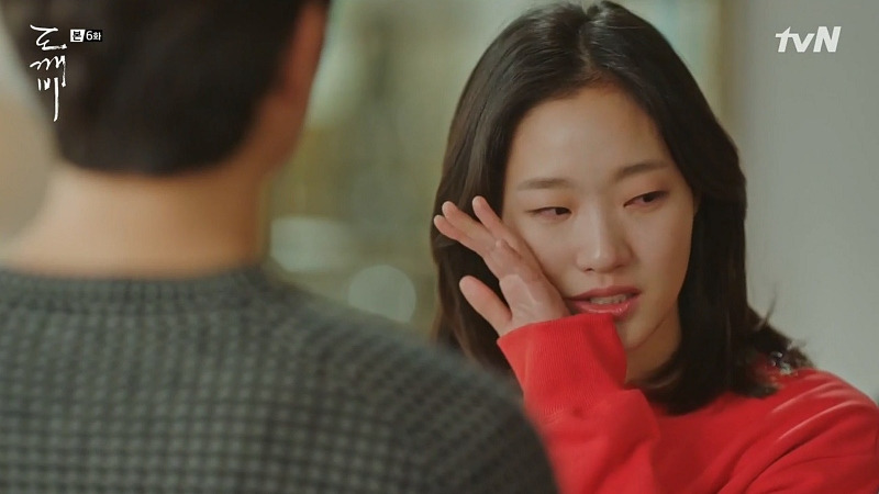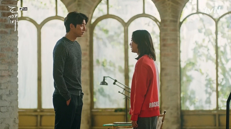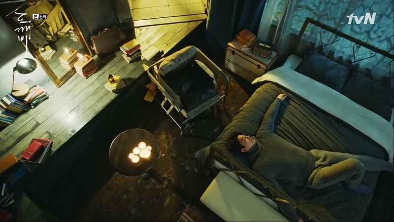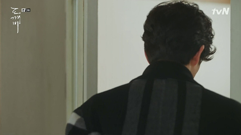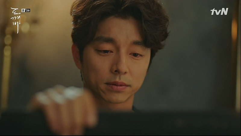 스물아홉 살의 은탁을 보게 된 김신은 자신의 방에 우두커니 앉아 있다. 미동도 않고 생각하는 김신의 모습 위에, 은탁이 방문을 노크하는 소리가 들리고, 잠시 뒤 힘없이 멀어져 가는 슬리퍼 소리가 들린다. 뭔가를 결심한 듯, 뒤늦게 일어서서 나가는 김신! 드라마는 소리와 인물의 표정, 움직이는 타이밍만으로 그의 결심이 얼마나 고민스러운가를 보여주고 있다.