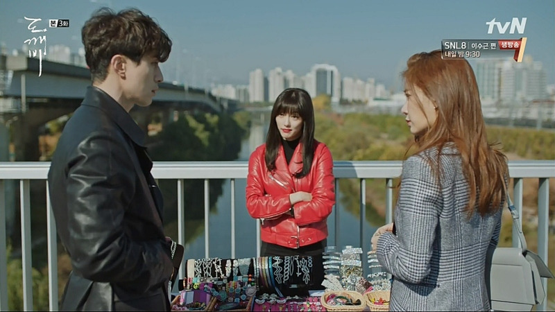 김신은 한 번 더 보고 싶은 은탁을 만나고 온 후, 먼 여행을 떠날 짐을 꾸리게 된다. 그리고 소중히 간직한 족자 하나를 손에 집어 든다. 그 뒤 바로 이어지는 장면이, 저승사자와 써니가 옥가락지로 만나게 되는 육교 씬이다. 써니의 얼굴로 마무리되는 육교 씬이 끝난 바로 다음 컷이, 김신 손에 펼쳐지는 족자 속 왕비의 얼굴이다. "멈추지 말고 폐하께 가세요! 장군!"이라고 말해주는 왕비를 회상하며 슬퍼하는 김신의 장면이 이어진다.