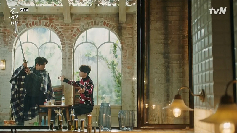 죽음을 결심한 김신이, 자신의 과거 이야기를 하며 검을 뽑아 달라고 은탁에게 부탁하는 6회 거실 장면은, 깊은 슬픔과 유머를 오가는 정서적으로 매우 어려운 씬이다. 이 씬을 중심으로 앞뒤의 씬들이 하나의 시퀜스를 이루는데, 전체적으로 침묵과 효과음, 음악을 이용한 사운드의 활용이 매우 훌륭하다.