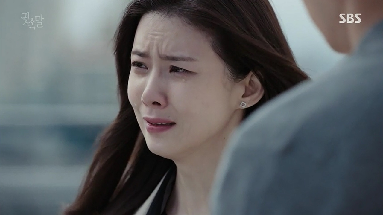 결국, <귓속말>의 멜로적 감성이 살아나느냐 마느냐의 문제는 박경수 작가가 여주인공 영주의 캐릭터를 살려 내느냐 마느냐에 달려 있다. 시청자들이 영주의 상황뿐 아니라 그 내면적 심리와 정서에 공감할 수 있다면, 동준과의 멜로 코드에 힘이 실리면서 드라마적 완성도를 갖추게 될 것이고, 만일 영주의 캐릭터가 시청자들로부터 이해받지 못한다면, 영주와 동준의 사랑은 정서적 몰입에 힘을 잃어 드라마적 완성도에 큰 타격이 될 수도 있다.