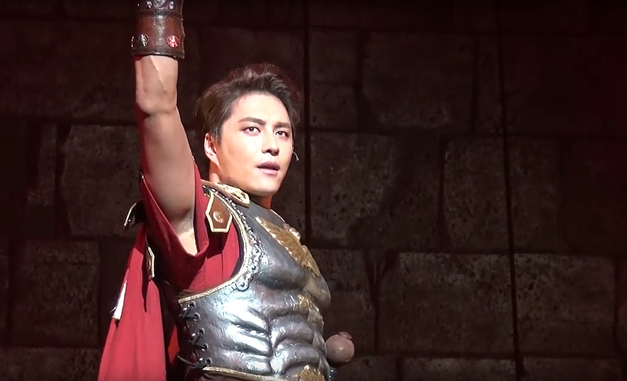 그 추억의 <벤허>를 다시 뮤지컬로 만나다니... 거기다, 벤허 역의 박은태는 이미 <모차르트>라는 뮤지컬에서 그 실력을 이미 충분히 봤었기에 더욱 기대가 됐다. 벤허 역할은 트리플 캐스팅으로, 배우 유준상과 카이도 함께한다. 개인적으로는 카이 목소리를 좋아해서, 카이가 연기하는 벤허를 다시 보고 싶은 마음도 있다. 이 뮤지컬의 대본을 쓰고, 연출을 한 왕용범 연출가는 "유준상은 성숙하고 힘이 있는 벤허를, 박은태는 섬세하고 인간적인 벤허를, 카이는 저돌적이고 젊은 벤허를 표현한다"며 세명의 배우가 표현하는 벤허의 다양한 모습을 설명한 적이 있다. 그의 말처럼, 내가 본, 박은태의 벤허는 무척 유약하고 착하기만 한 귀족 가문의 청년, 벤허가 운명에 휩쓸리면서, 조금씩 성숙해 가는 모습을 보여주는 듯한 느낌을 준다. 아마도 박은태라는 배우가 가진 고음의 목소리 톤의 영향이 아닌가 싶다. 박은태는 여린 청년의 목소리로 벤허의 심리를 노래에 담아 가슴 깊이 정서를 전달하며 극의 타이틀롤로서 극의 구심점을 이룬다. 다만, 연기에 있어서는 초반 집중력이 약한 느낌이 들어 조금 아쉽다.