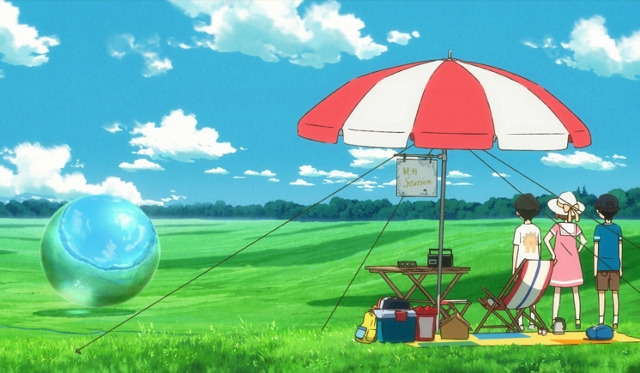 여기서 재미있는 점은, 허공에 떠 있는 '바다'라는 물체가 아오야마가 궁금해하던 '세상 끝'의 의미와 중첩되어 보인다는 점이다. 특히, 아오야마의 생각을 이끌어 주는 존재로, 아버지가 꽤 중요하게 등장하는데, 아버지는 아오야마에게 주머니를 뒤집어 보여주며 아오야마가 관심 있어하던 '세상 끝'에 대한 이야기를 들려준다. 어쩌면, 주머니의 안과 밖처럼, '세상의 끝'은 다른 차원의 세상과 바로 맞닿아 있을지도 모르며, 언제든지 그 낯선 세상이 뒤집어져 드러날 수도 있다는 것, 그리고 아오야마가 생각하는 '세상 끝'이라는 것이 그렇게 멀리 있지 않을 수 있다는 이야기였다. 아버지의 이야기가 끝나자, '바다'라는 신기한 물체가 아오야마 앞에 등장한다. '세상 끝'이란 의미를 이미지적으로 상상해 보면, '땅끝'의 이미지로 생각해 볼 수 있다. '세상의 끝'을 의미하는 '땅끝'엔 당연히 바다가 존재하고, 하마모토가 '바다'라고 명명한 그 이상한 물체는 '땅의 끝', 곧 '세상의 끝'에 존재하고 있는 땅과는 다른 또다른 세상으로서 바다가 되는 것이다. 그래서 영화 속 '바다'는 '다른 차원의 또 다른 세상'을 의미한다.