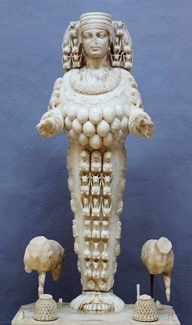 이쯤 되고 보면, <펭귄 하이웨이> 속 '치과 누나'의 캐릭터가, 지모신 격인 아르테미스의 캐릭터성을 가져온 것이란 사실을 짐작해 볼 수 있을 것이다. 위의 사진에서 보듯이, 아르테미스의 젖가슴은 다산과 풍요를 상징하는 것이니, 아오야마가 누나의 가슴 연구에 집착하는 것은, 누나가 가진 아르테미스의 상징성을 부각한다는 측면에서 의미 있는 설정이 된다. 또, 누나는 대지모신(大地母神)의 상징이기 때문에, 아오야마가 누나를 사랑하고 연구하는 것은, 곧 대자연에 대한 사랑과 연구를 의미하게 되고, 그것은 세상 모든 것에 호기심을 갖고 탐구하는 아오야마의 캐릭터성에도 부합한다. '펭귄 하이웨이'는 이야기 속 캐릭터에 신화적 상상력을 융합시킴으로써, 이야기의 의미를 확장시키는 복합적 내러티브를 만들어 내고 있는 것이다. 하지만, 그 상징적 의미를 제대로 읽어내지 못할 경우, 아오야마를 성(性)적 호기심에만 치중하는 아이로 오해하는 일이 벌어지고 만다.