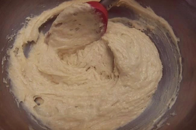 2. 1에 가루류를 넣고 주걱으로 섞어주세요.