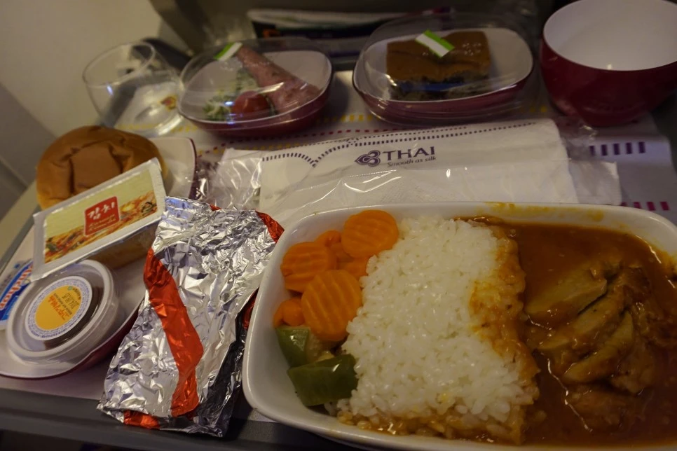 낮에 출발해 밤에 도착하는 일정이었다. 타이항공은 처음 인도에 갔을 때 이용했던 항공사이다. 그때 만족했던 기억에 더욱 저렴한 티켓을 뒤로하고 일부러 타이항공을 선택했다. 기내식이 정말 맛있다. 여러 항공사를 이용해봤지만 Top 3안에 드는, 지인에게 자신 있게 추천하는 항공사이다.